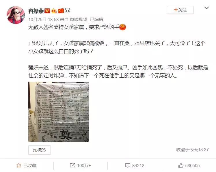 数人签名支持女孩家属,要求严惩凶手,转发已超百万!