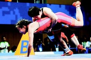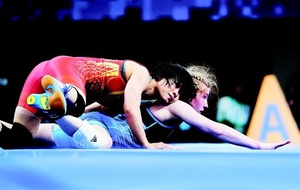 第七届世界军人运动会摔跤比赛22日在武汉软件工程职业学院体育馆举行,中国队在女子自由式摔跤中斩获两金,李玉燕和李绘分别获得50公斤级和57公斤级冠军。