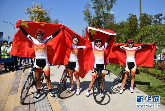 第七届世界军人运动会公路自行车女子个人、团体赛20日在武汉东湖绿道举行,当日,在武汉举行的第七届世界军人运动会公路自行车女子公路团体决赛中,中国队以4小时05分46秒的成绩获得金牌。