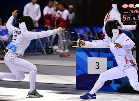 空军五项是军运会最具军事特色的项目之一,包括飞行比赛和运动比赛两个部分。其中运动比赛包括射击、游泳、击剑、篮球、障碍跑和定向越野6个项目。22日上午首先进行的是空军五项女子击剑项目的比赛,共有中国、巴西、西班牙等9个国家24名运动员参赛。中国选手脱颖而出,程新、和浩琴分别获得前两名