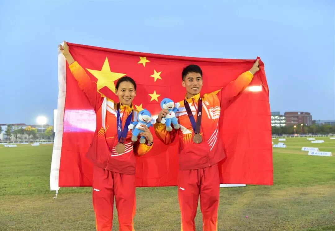 季 军刚刚结束的第七届世界军人运动会现代五项男女混合赛中国八一队 张琳彬 王炜获得铜牌
