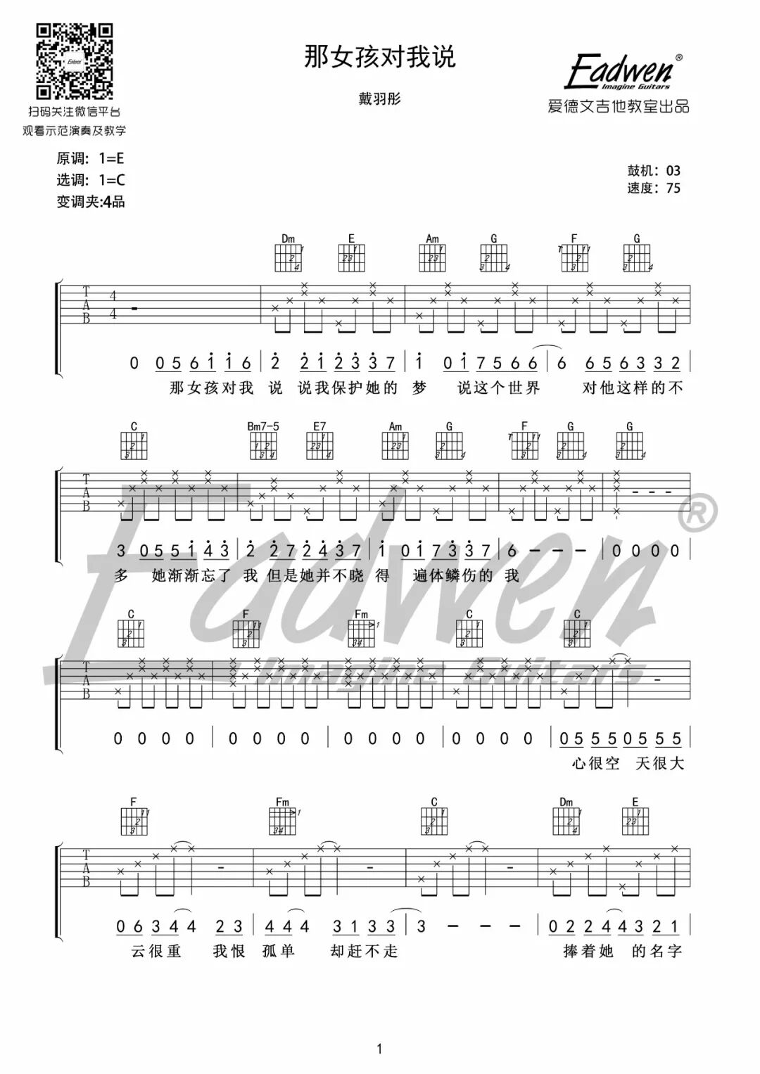 张泽熙《那个女孩》吉他教学+吉他谱—爱德文吉他教室(84)