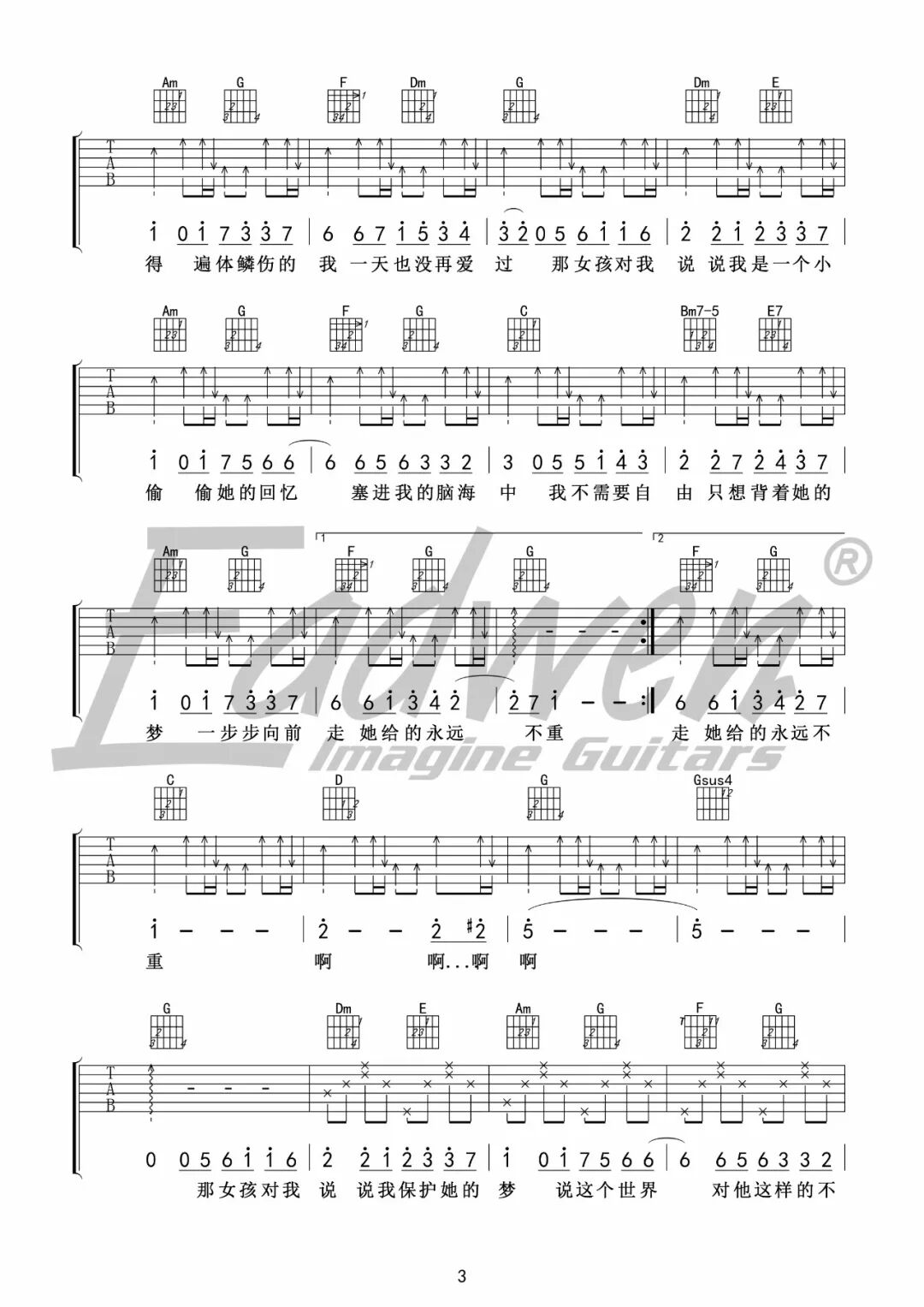 汪峰《像梦一样自由》吉他教学+吉他谱—爱德文吉他教室(88)
