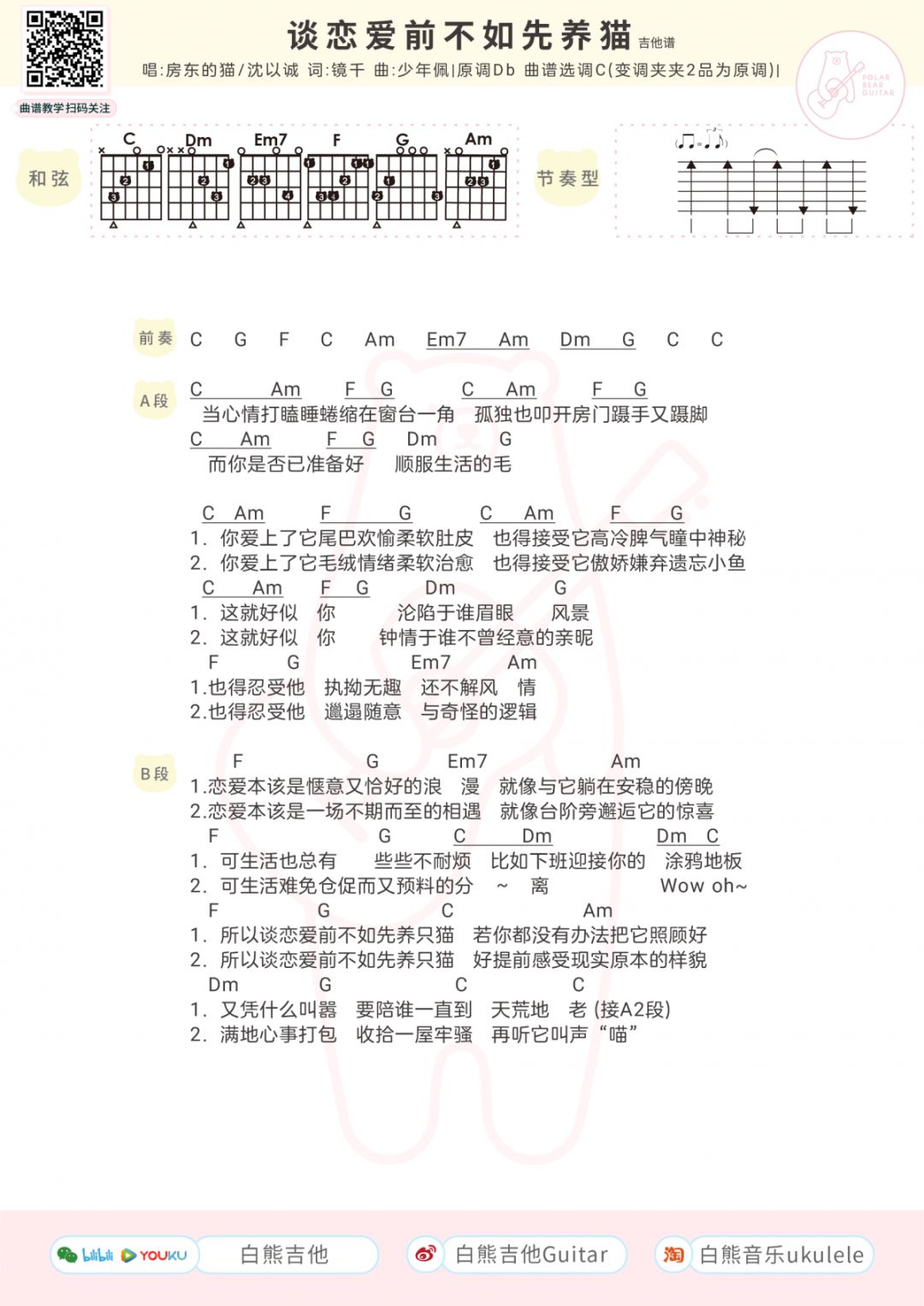 ○〈谈恋爱前不如先养猫〉是由镜千作词,少年佩作曲,房东的猫和沈以诚演唱的一首歌曲,发行于2019年10月10日。