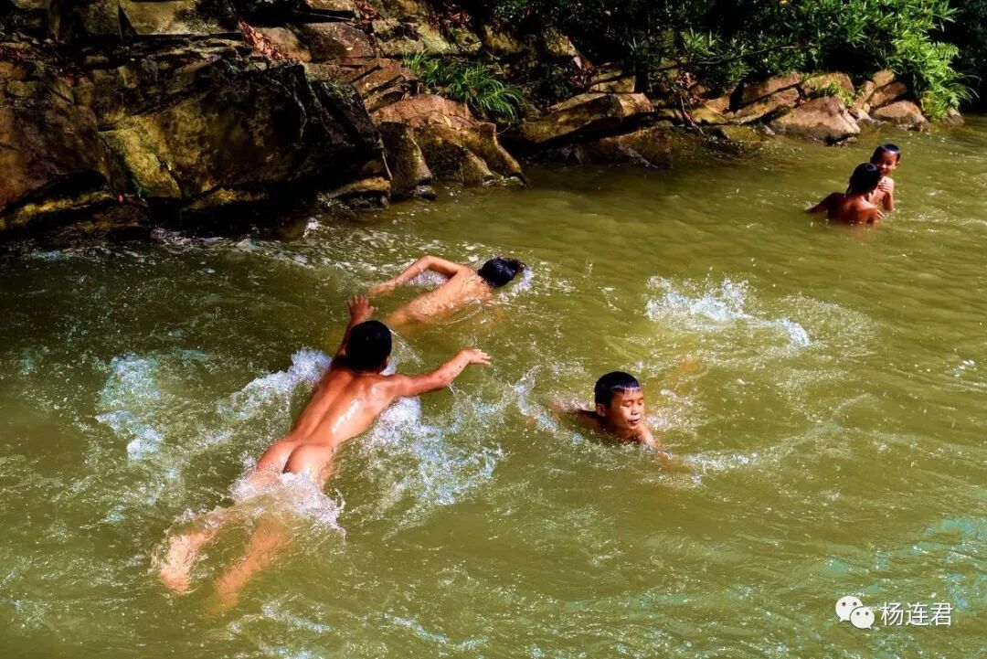 夏天里,那可是我们小孩子们玩的最开心的时候了,我们在小河里嬉戏,扎猛子、学狗刨、打水架,那一个个光溜溜黑黝黝的小身材在水里像一条条活蹦乱跳小泥鳅。一会儿浮在水面,一会儿一个猛子扎到水里,比着看谁在水下呆的时间长,看谁猛子扎的远,比谁游得远,那开心快乐的劲头,我这些年就再也没有过。小河水最深的地方也不到一米,浅的地方也就30厘米,水流缓缓。河岸的一边有一片天然的藕田,我们有时候就会扎猛子挖出一段野藕来吃,有些很涩涩的味道,也会挖一些回家煮着吃,不过的确不太好吃。再有浑水捉鱼也是有趣的事,先把水趟混,让鱼儿看不清方向,然后双手乱摸,碰巧也会摸到鱼儿,有点瞎猫碰上死耗子的味道。孩提的时光天真烂漫又童稚无忧,小河静静的陪我们那代人度过了快乐的童年和少年。