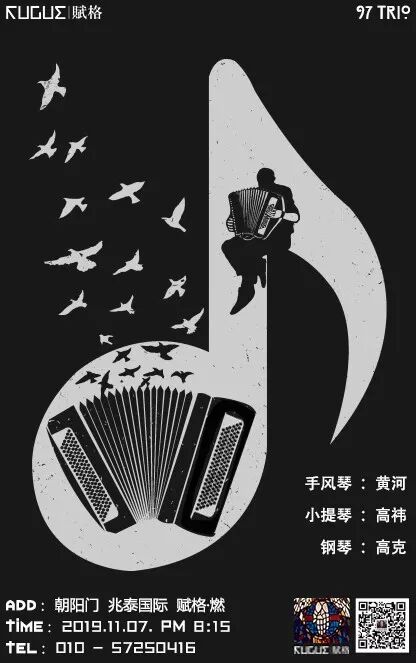 本次“赋格”邀请到三位年轻的乐手,手风琴 黄河,小提琴 高祎,钢琴 高克,组成一个手风琴lead的三重奏为大家带来一场精彩的探戈之夜。