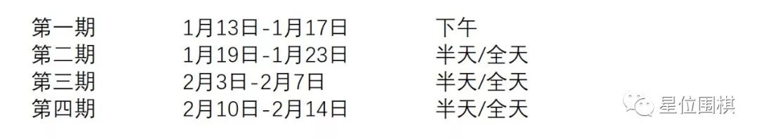 为丰富孩子们的假期生活,培养并增加孩子们对围棋的兴趣。开拓孩子思维,锻炼孩子们的逻辑思维能力、记忆力、学习力和抗挫能力,开设2020年星位围棋寒假训练班。