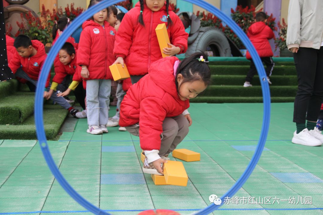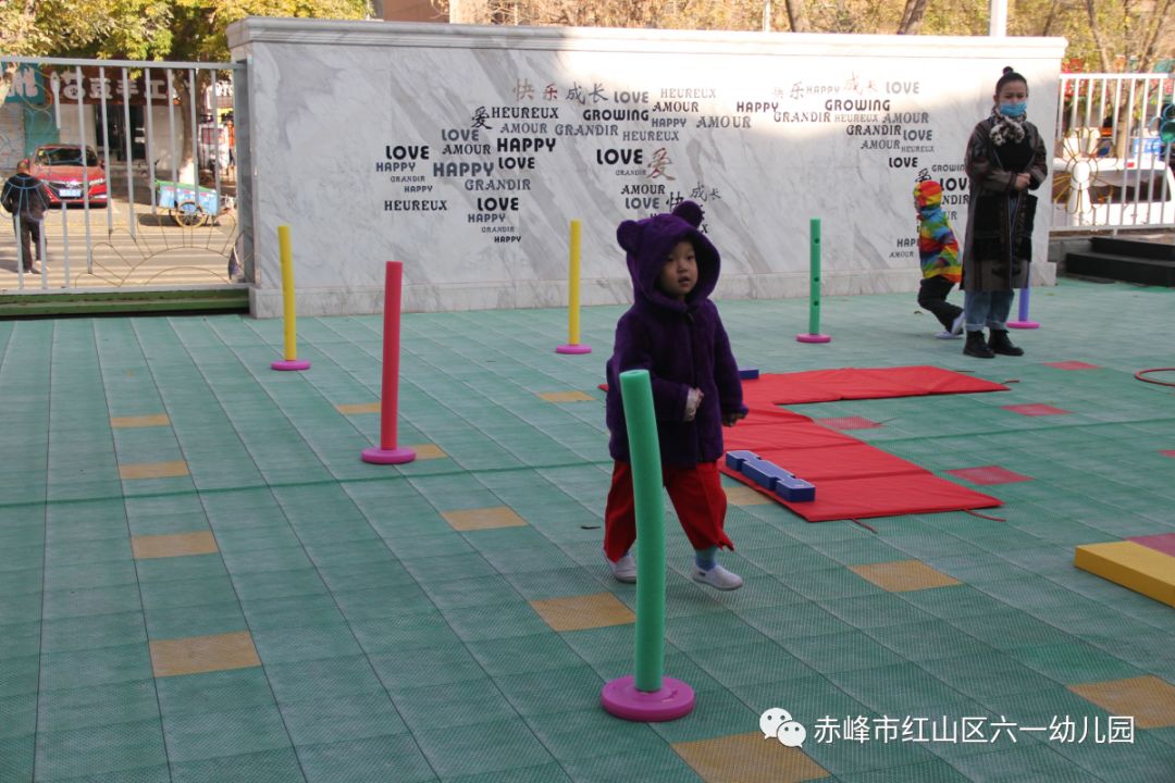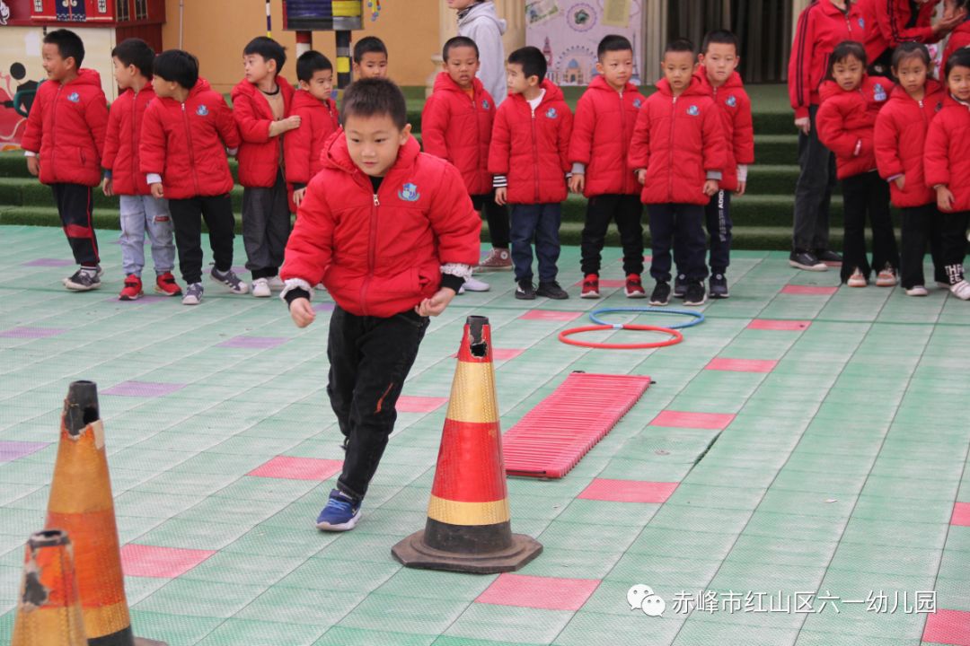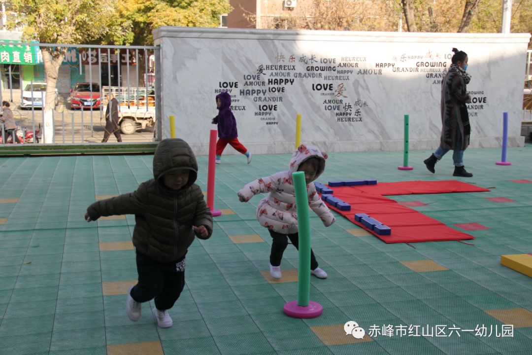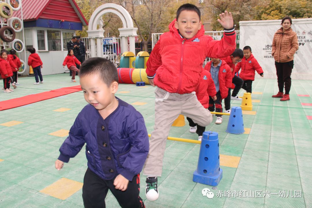 中班组老师巧妙的利用钻爬筒、爬行垫、单元砖等器械,通过不同的摆放方式,创设投掷、钻爬、平衡等项目,孩子们在老师的指令下奋力的跨过跨栏,走过平衡木,大家你追我赶好不热闹,操场上一片欢声笑语。