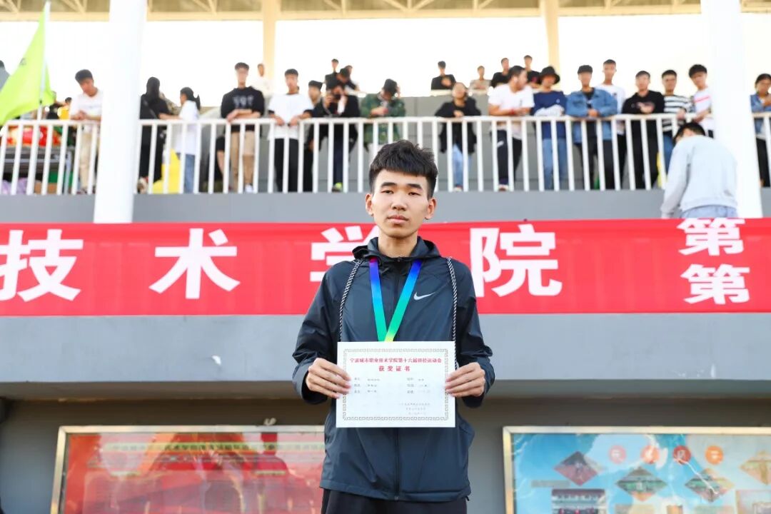 男子200米、400米冠军 虽然没有破自己去年的纪录有点遗憾,最后一年拿个冠军也在意料之中。想和田径队的小伙伴还有热爱跑步的同学说,希望他们能多练,比赛最重要的还是友谊。