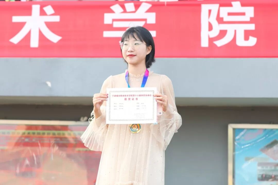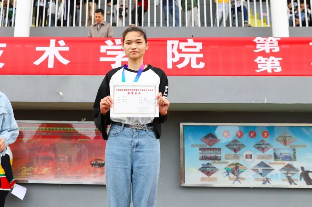 女子跳远、跳高冠军 破了纪录很开心,希望以后可以破更高的纪录。平时有锻炼,有自信心,相信自己肯定能行。除了自己的努力以外还要感谢田径队的支持和同学老师的关心。