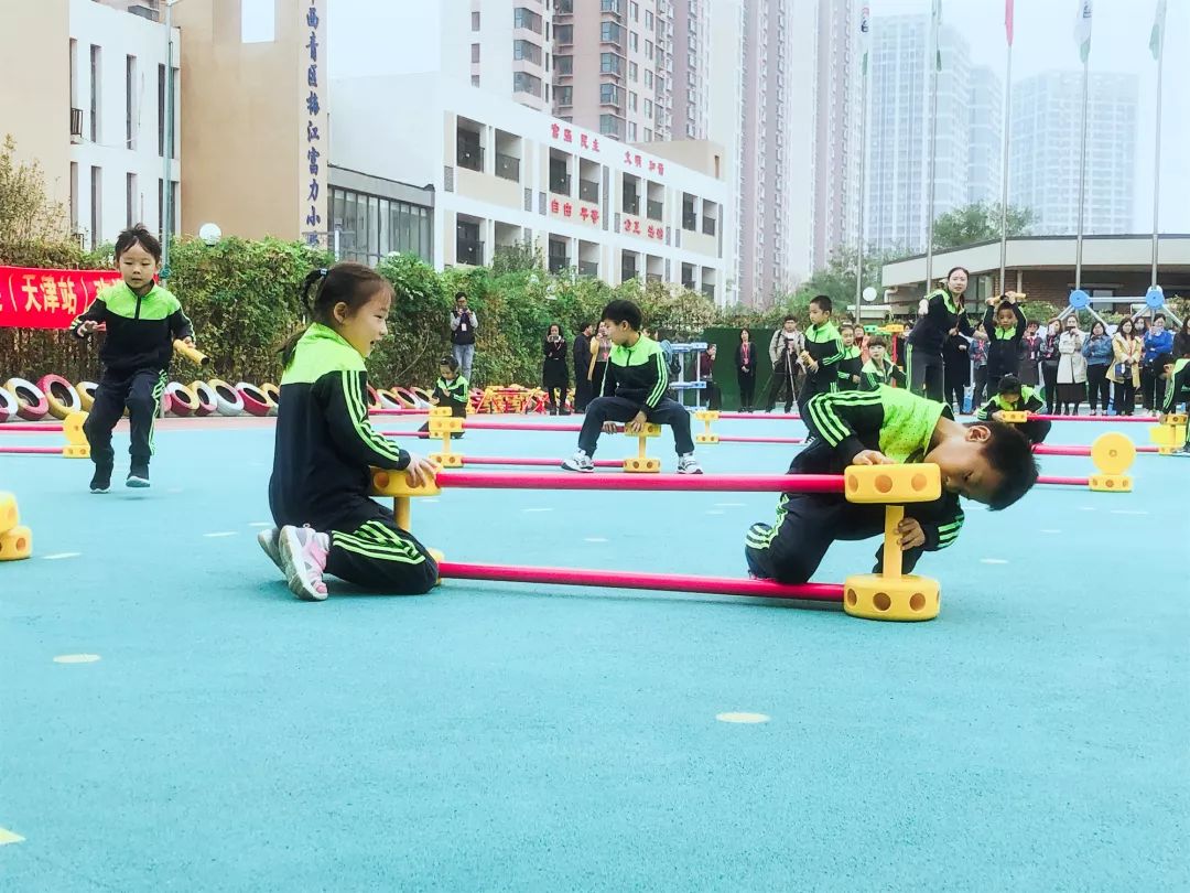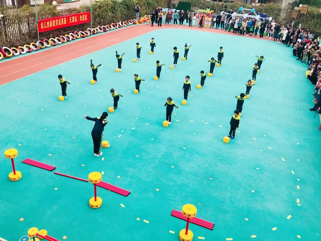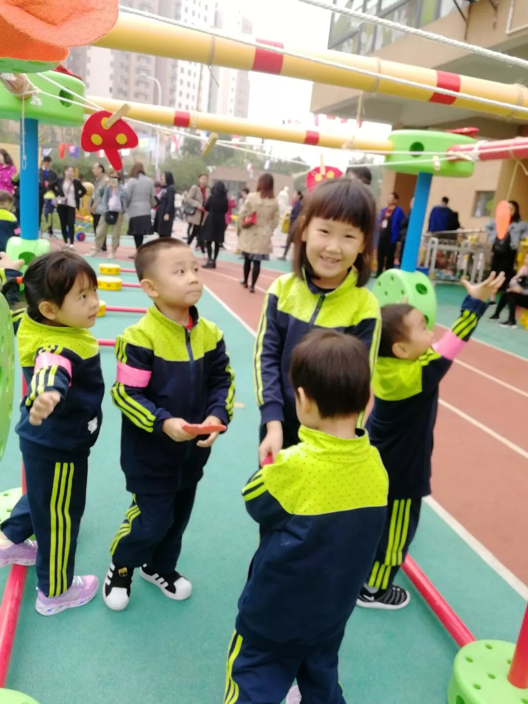 最后展示的是小、中、大班的大带小区域创新游戏。利用万能工匠器械拼搭的各种组合,有平衡、钻爬、攀登、跳跃、推车等多样的万能工匠组合玩法充分发展着幼儿的走、跑、跳、钻、爬、平衡等多种体能,逐层递进的难度也在鼓励幼儿一次又一次的挑战,体验成功!让幼儿全面感受到运动的快乐,并通过大带小的活动增进幼儿间的交往和互助,有利于幼儿身心健康全面发展。