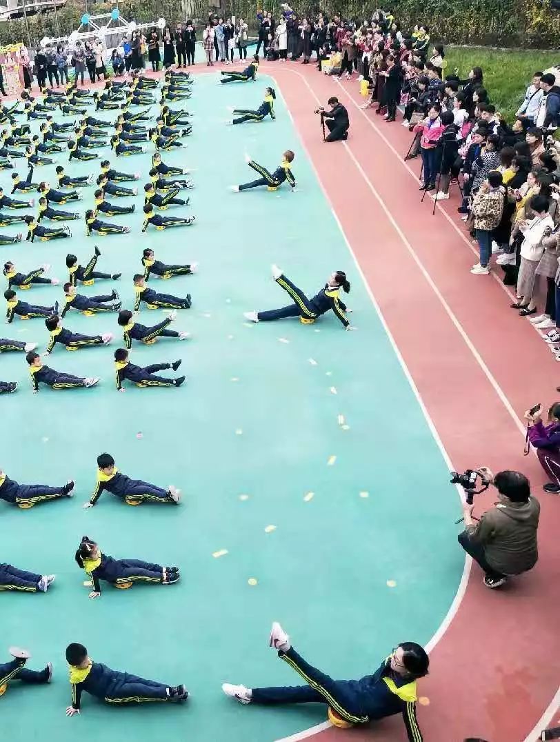 接下来向我们展示的是中班小朋友的创意圆盘操。孩子们的圆盘操先从手持圆做操,到坐在圆盘上做操,最后站到圆盘上做操,将三段有难度的操节非常完美的向大家展示。并展示了圆盘的多种创意玩法。