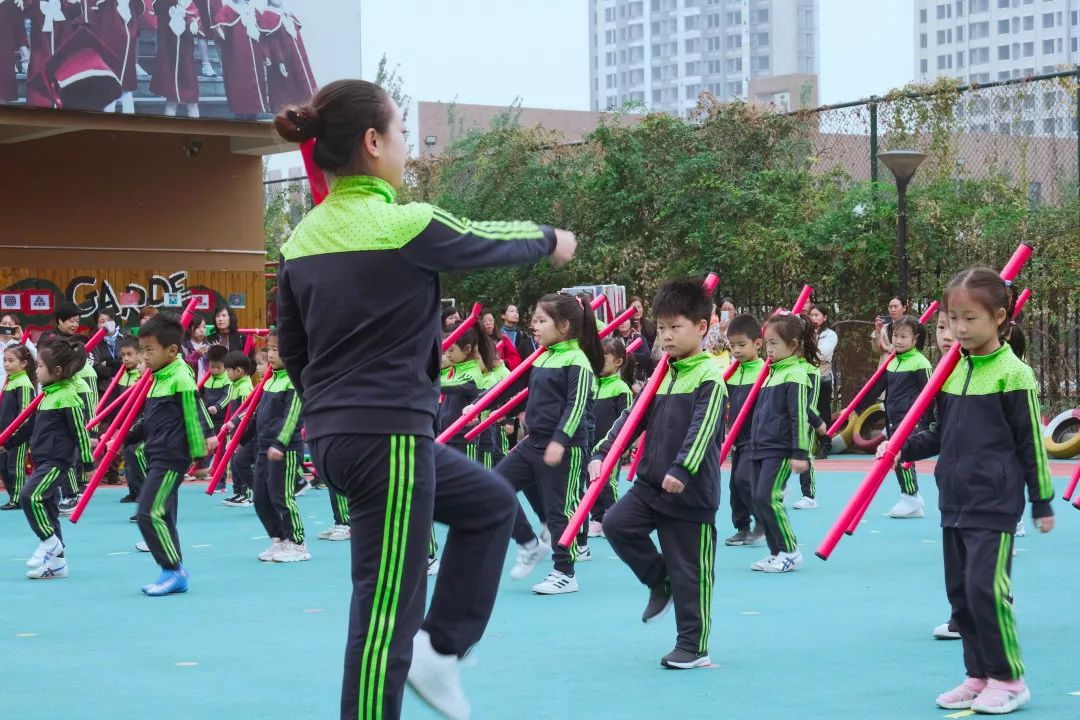 首先,由大、中、小班幼儿分别就万能工匠创新早操向参访教师进行展示。大班幼儿的棍棒操充分展示了梅江湾幼儿的“精·气·神”,变换的队列、符合幼儿年龄特点的操节、多种玩法的游戏以及舒缓优美的放松整理,为今天的展示活动拉开了序幕。
