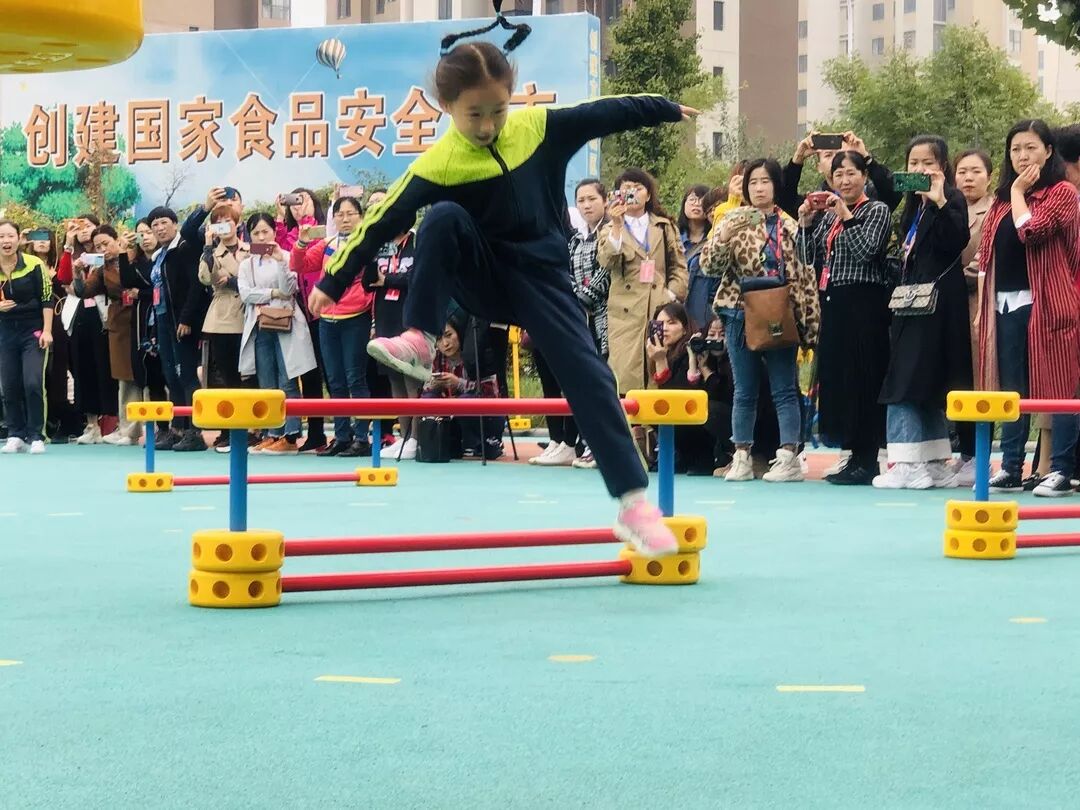 接下来由常明星老师组织的大班体育活动《跨栏小飞人》,精准的口令、准确的动作示范、亲切的教态、精心准备的教育活动向全国教师展现了梅江湾教师的教学特色。利用万能工匠长棍和圆盘器械,有目的的将幼儿基本动作的发展与身体素质的提高有机结合起来。