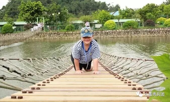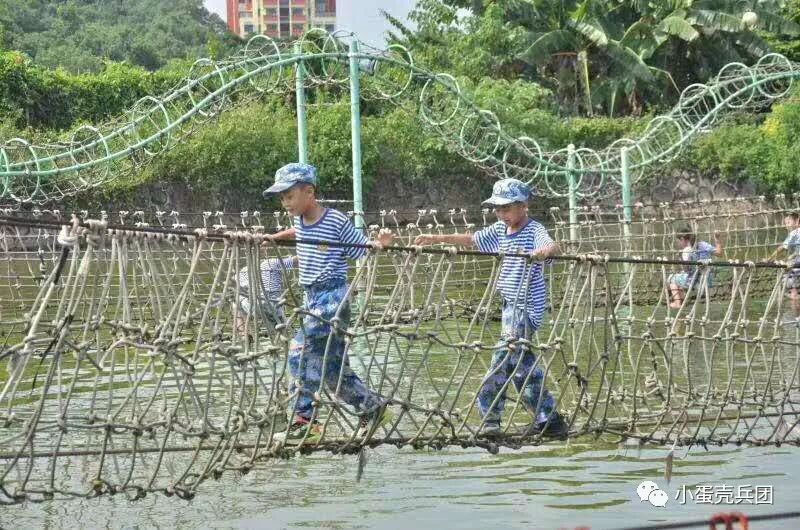 在教官和辅导老师的监督和保护下,小特种兵们参加水上拓展项目