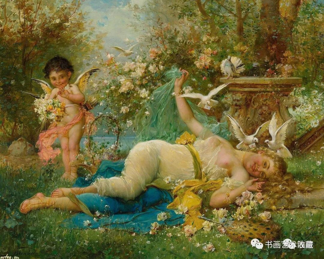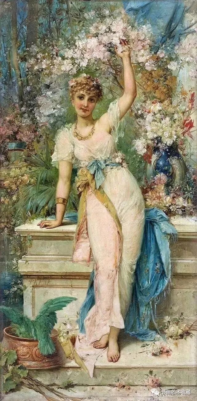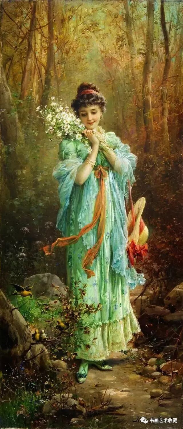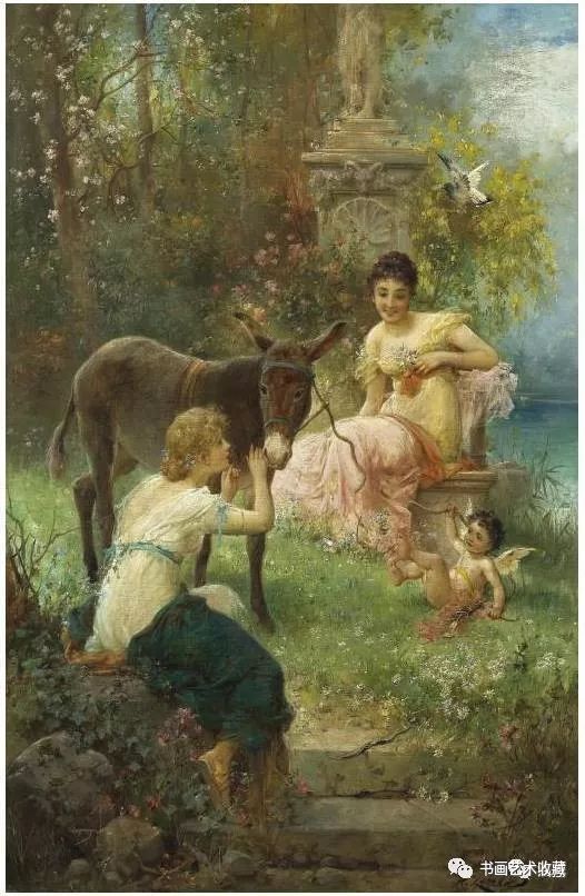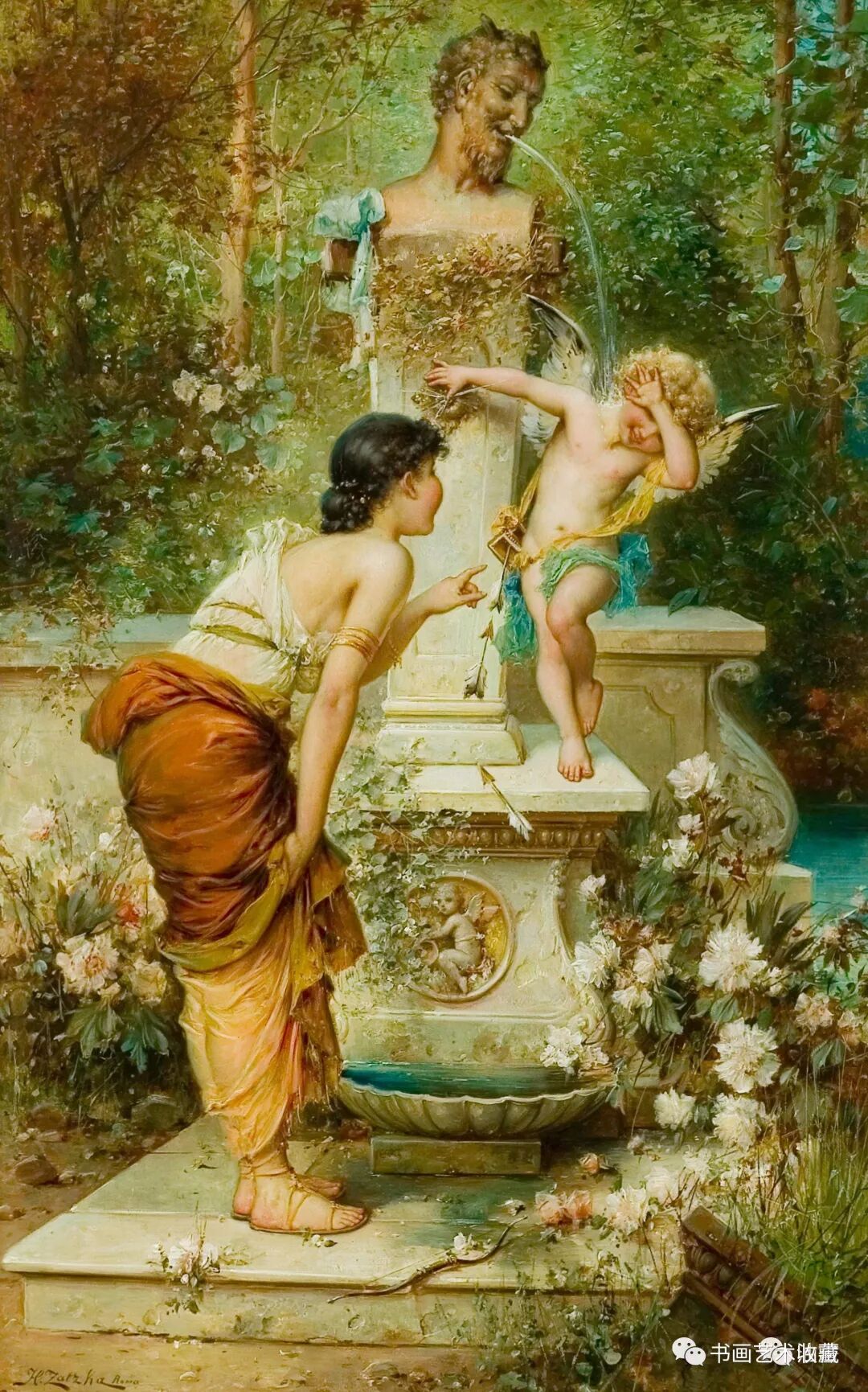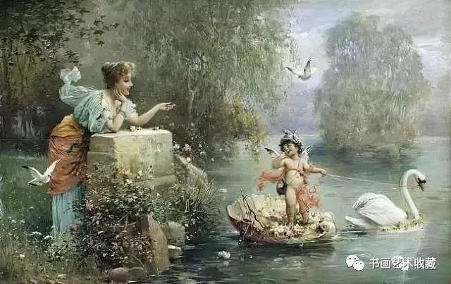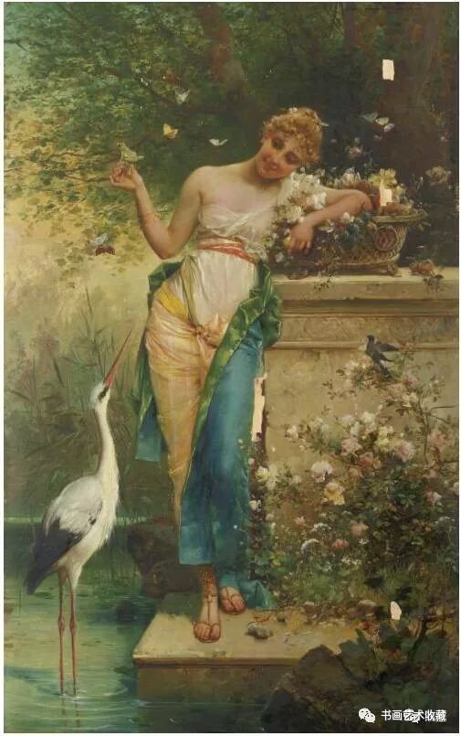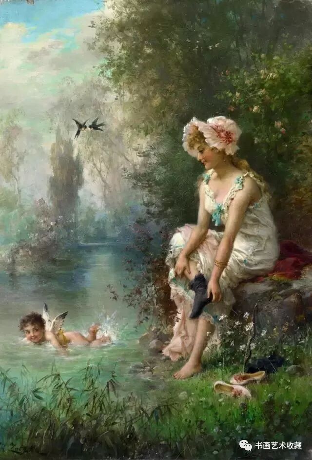 Hans Zatzka, 1859-1945 汉斯.查兹卡,是一位奥地利画家,从维也纳艺术学院(Academy of Fine Arts of Vienna)毕业后,就一直从事宗教画、寓言故事画、风俗画与人体画的创作,曾经为奥地利的许多教堂作过装饰。查兹卡的作品带有学院派绘画的精致风格,用色典雅、构图细腻,并常使用Joseph Bernard, J. Bernard或Bernard Zatzka等别名落款,此种以别名落款的风气盛行于十九世纪末到廿世纪初那些与特定业者或画廊签有工作契约的画家之间。由于每位画家都不只和一位经纪人签约,所以他们通常都会使用别名签在作品上,同时交付多位业者出售,这样一来,就可以在不违约的情况下,拓展个人作品通路。