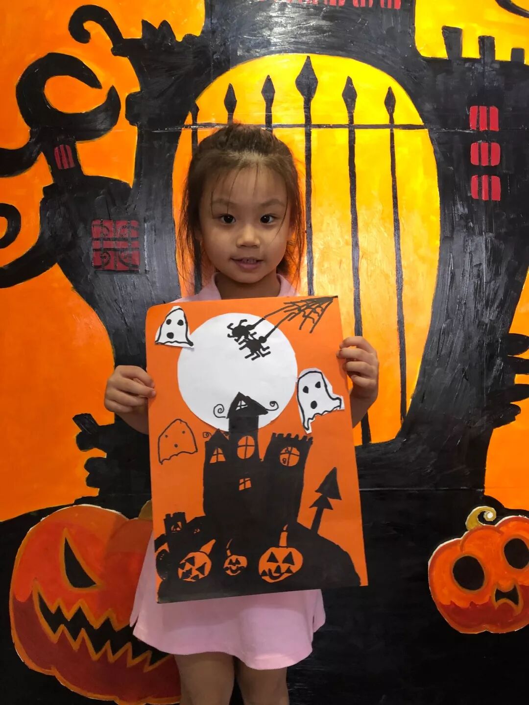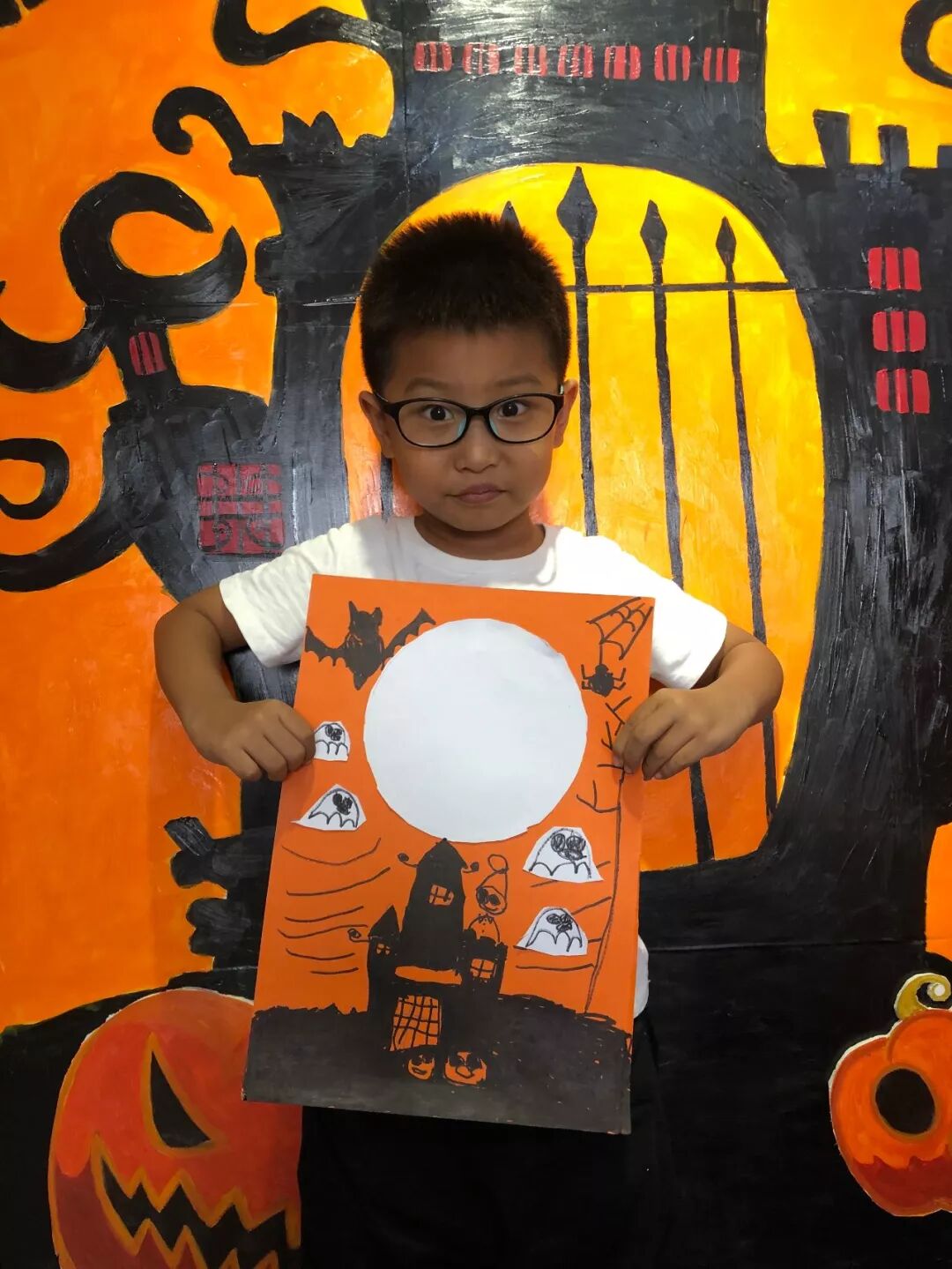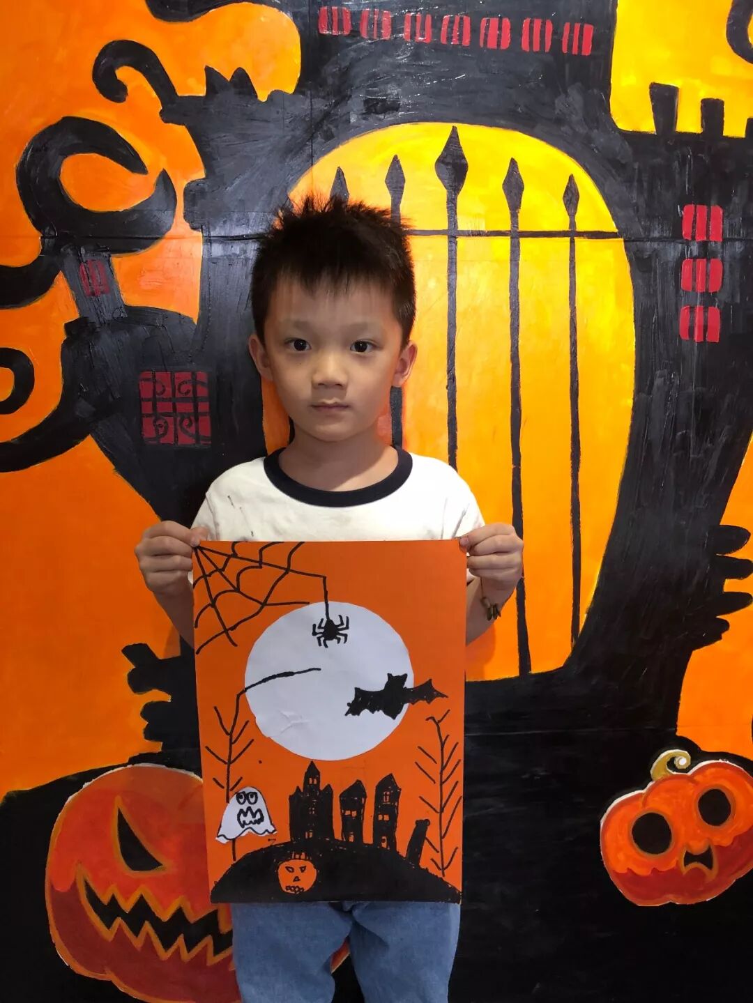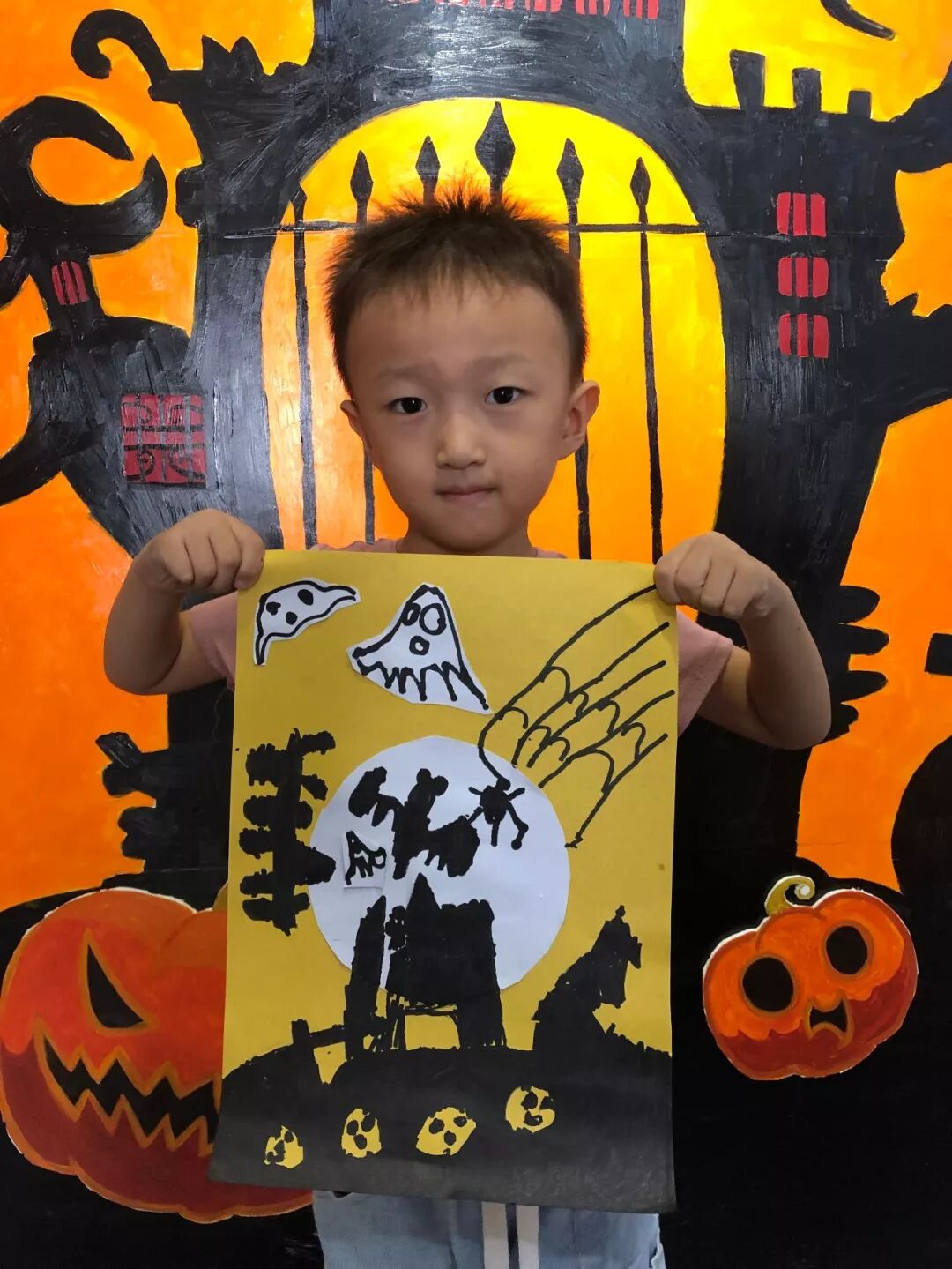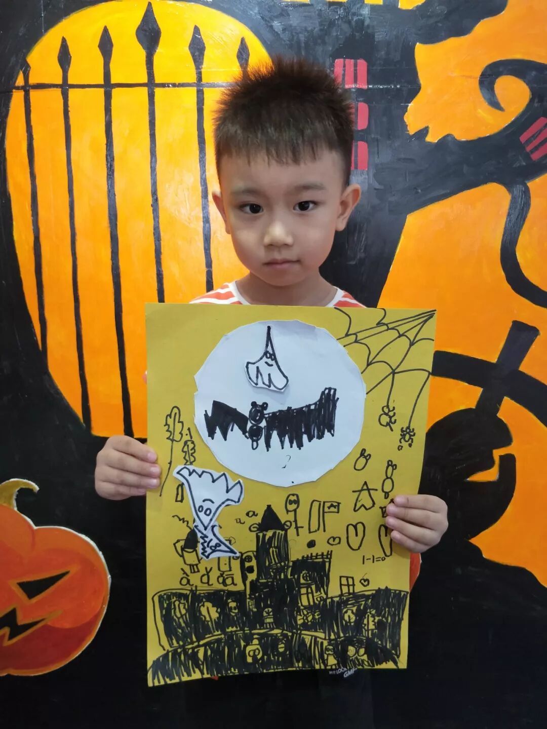 课程主题:《万圣节前夕》,通过老师对小朋友们的引导,让小朋友们绘画出万圣节前一晚各种怪诞的东西一起玩耍捣蛋的画面,采用剪贴和绘画结合的手法,锻炼小朋友们的动手能力。