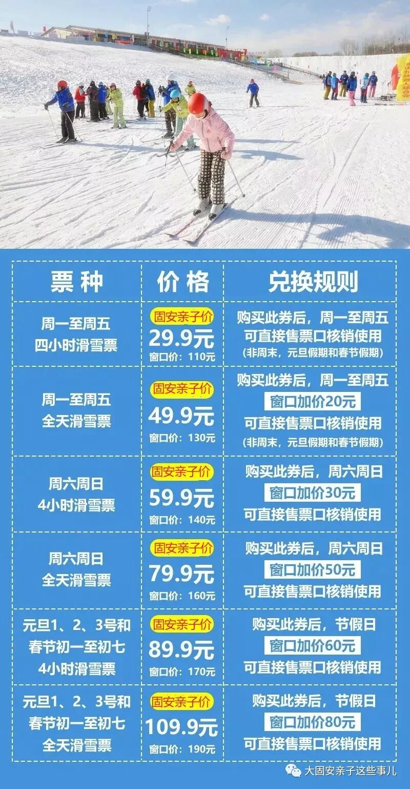 3. 1米以下儿童门票半价,滑雪与成人同价。