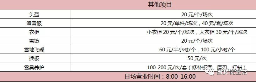 3、头盔:20元 存衣柜:20元 滑雪服:20元/半身 40元/全身