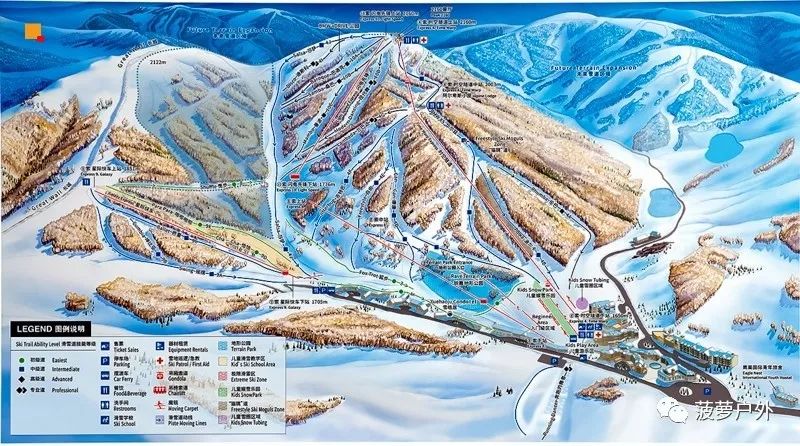 造雪面积约20公顷,难度系数高。其中,现代舞、兰巴达等雪道最大坡度可达52%,最大长度约800米,为“雪疯子”们提供超级刺激的滑雪挑战。