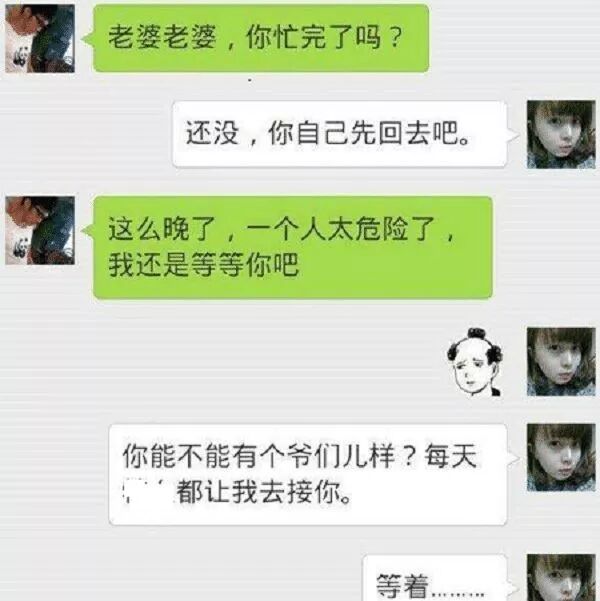小冰的搞笑聊天记录:吃晚饭,媳妇因为点事儿,絮絮叨叨!我说:你再没完没了,我就出去吃了!”儿子听到眼前一亮,放下勺子,“爸爸,我也要跟你出去吃!”“儿子,楼道风大,你还是和妈妈坐屋里吃吧!”