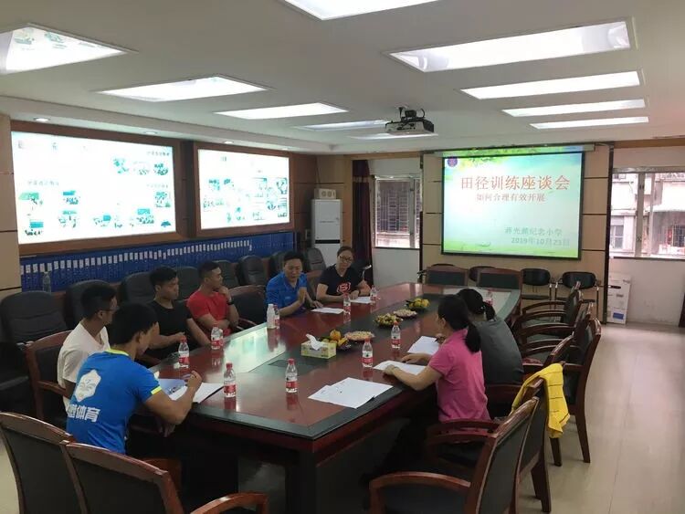 首先,学校体育科组长罗清华老师主持发言,他简述了我校田径队目前的训练和比赛情况,表达了全体体育教师对田径训练的看法和建议,并对专家的到来表示感谢。