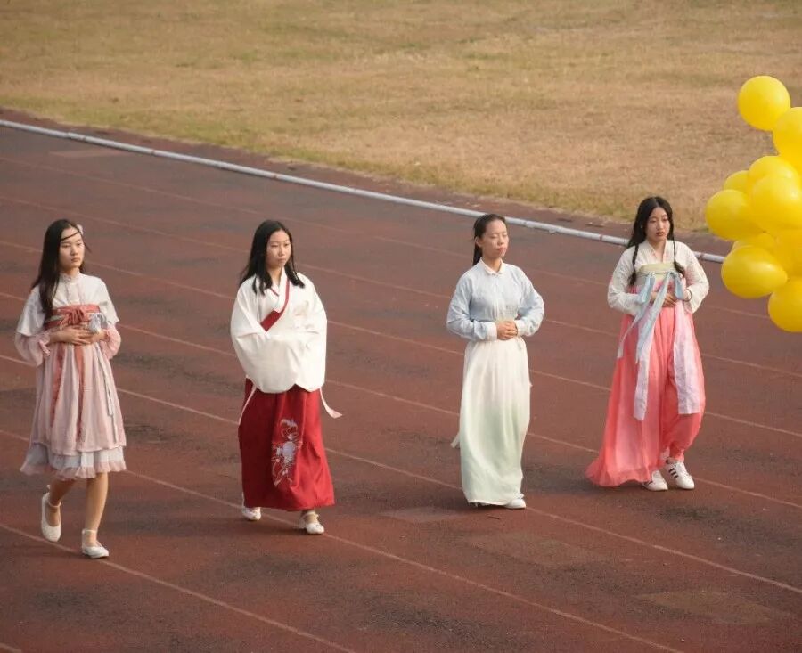 每一个学院的方阵,都各具自己学院特色。美术与设计学院,拿着自己手绘校徽的伞走来,既体现美感又满载着心意;外国友人方阵各自穿着自己国家的特色服装,洋溢着热情的笑容向看台的学生打招呼······