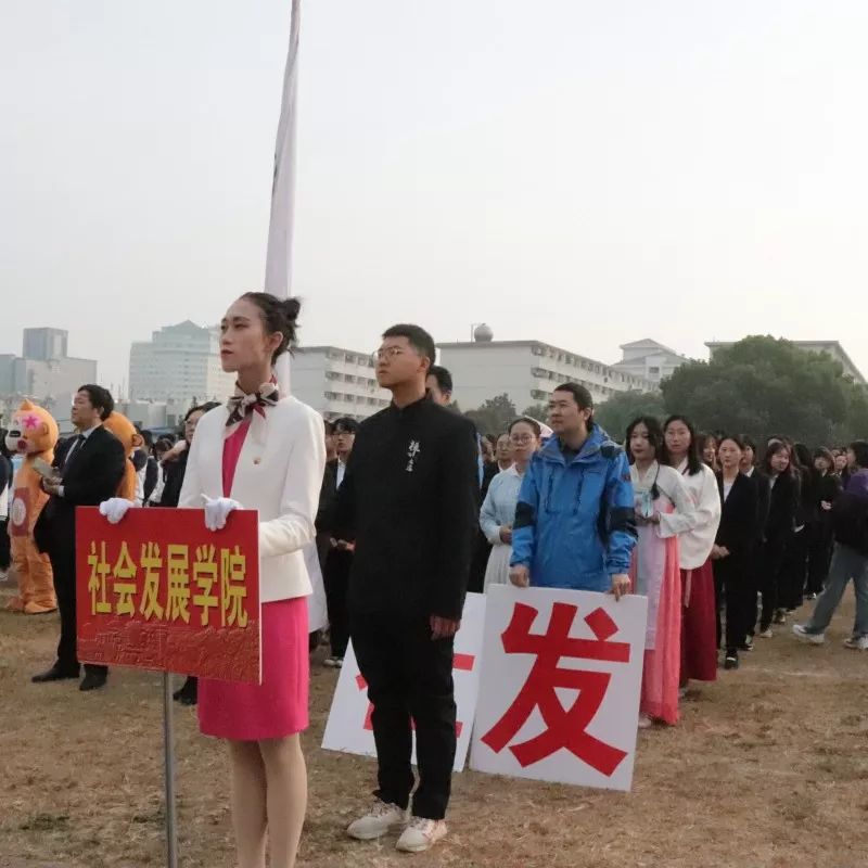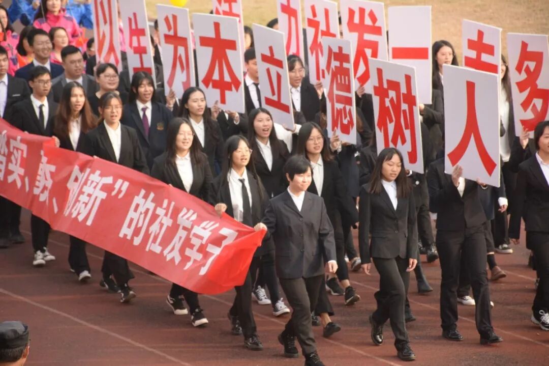 “以生为本,立德树人,活力社发,一专多能。”激昂嘹亮的口号从远处传来,我院方阵逐渐走入画面。