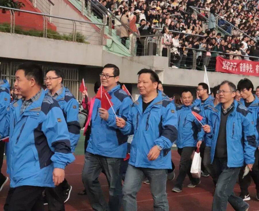 院党委书记林超,院长李庆钧带领着社发的老师和学生,迈着坚定的步伐,面露从容的微笑走过主席台。