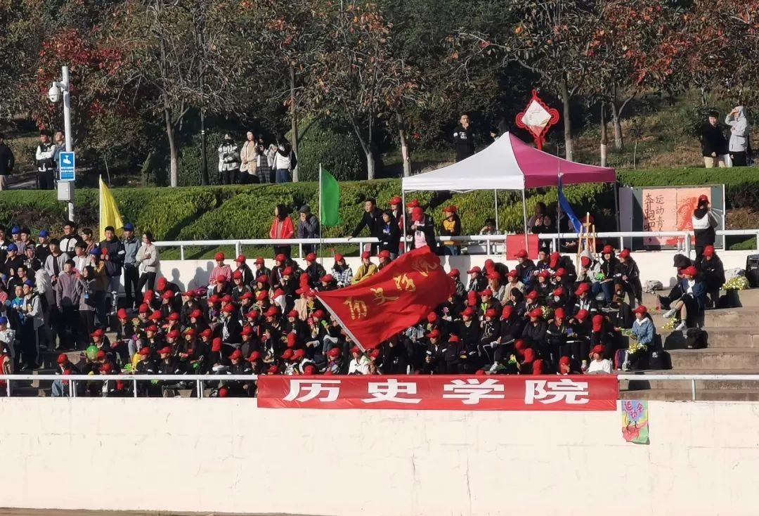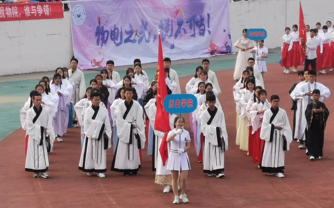 开幕式上,历史学院方队延续了一贯的古装特色,衣袂飘飘间尽显学院特色。赛场上,运动员们更是奋勇争先,刷新了历史学院多年的记录,尤其是在标枪、跳高、跑步等项目中表现极为突出,彰显了历史学院健儿的蓬勃之姿。观众席上,同学们排列整齐有序,加油稿高质高量,掌声雷动,欢呼阵阵,前方飞舞的院旗上“历史学院”四个大字熠熠生辉,一幕一幕无不展现着历史学院学子的青春风采。