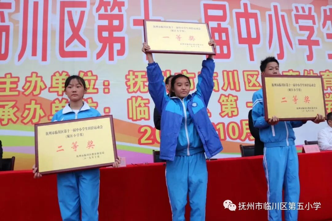 临川五小的运动健儿们在2019年10月22日至25日举办的临川区第十一届中小学田径运动会中,通过他们的团结协作,努力拼搏,最终以团体总分99分的好成绩荣获城区小学组二等奖。