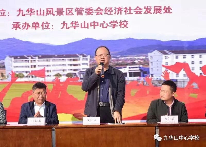九华山风景区管委会经发处党组书记、处长钱叶虎出席开幕式并宣布本次运动会开幕,风景区关工委和中心学校相关负责同志也参加了开幕式。