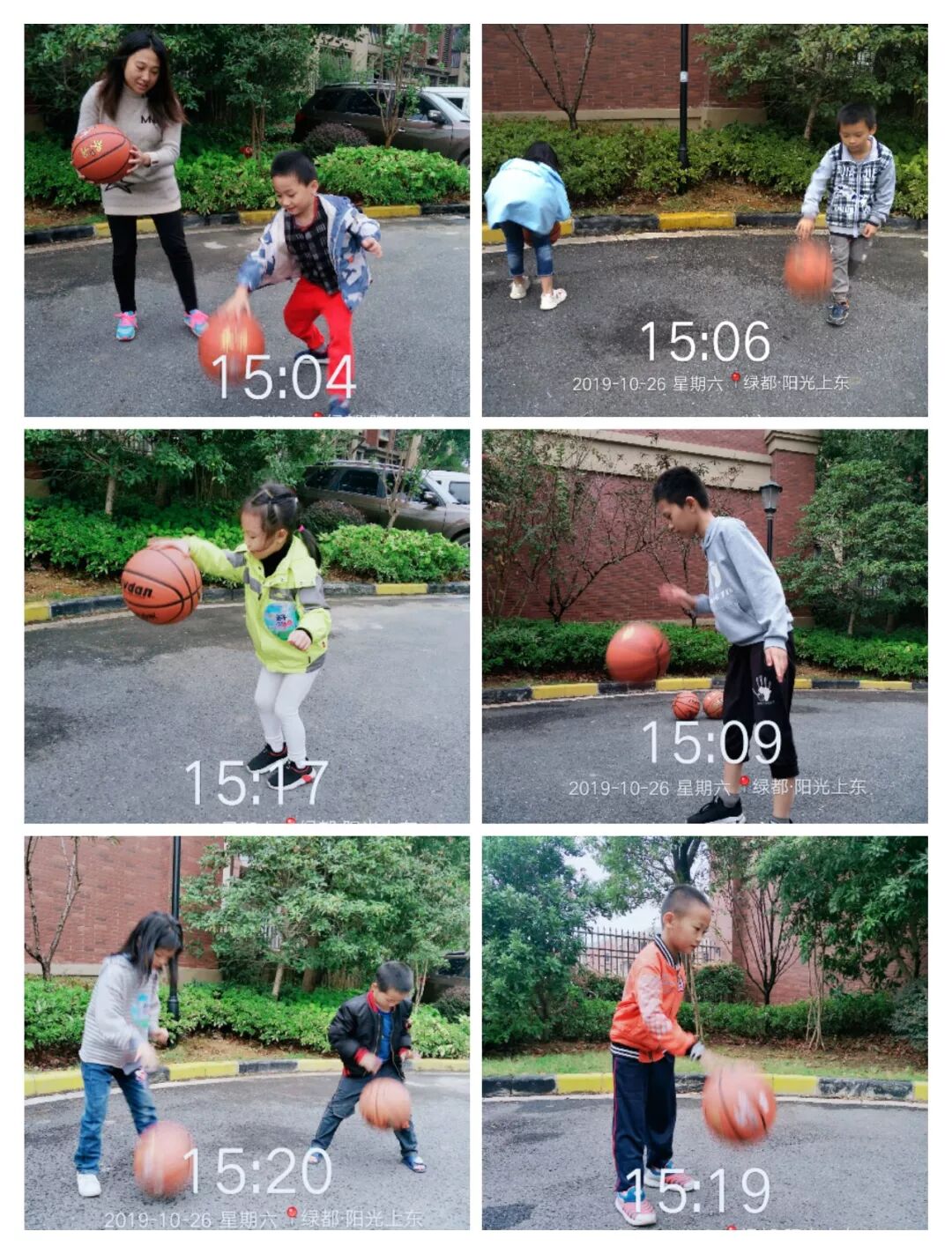 这可是个技术活儿拍着篮球运到终点不仅要稳还要跑得快家长和小朋友你来我往 玩得不亦乐乎