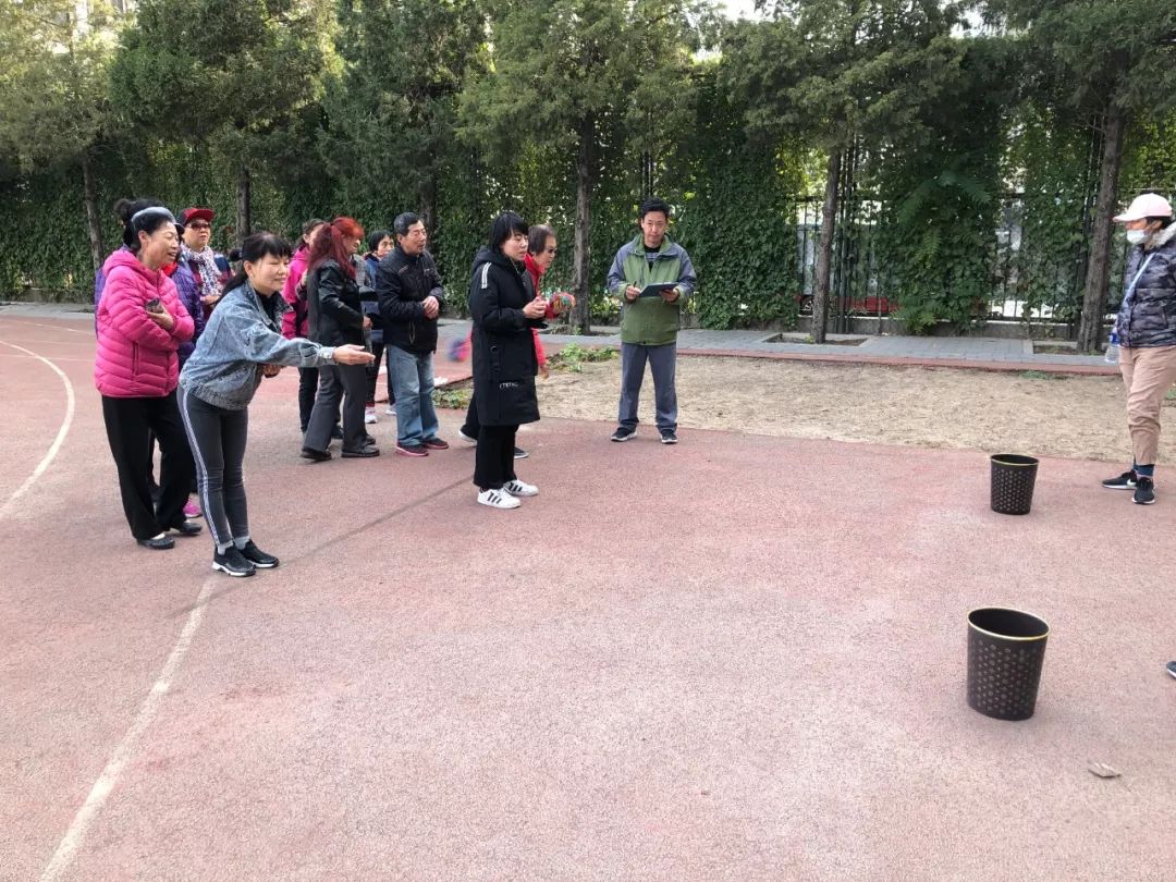在社区邻里节来临之际10月26日上午8点半康家园西社区组织社区老年人于康乐园小学校操场举行了康家园西社区不忘初心 牢记使命老年趣味运动会共计100余人参加