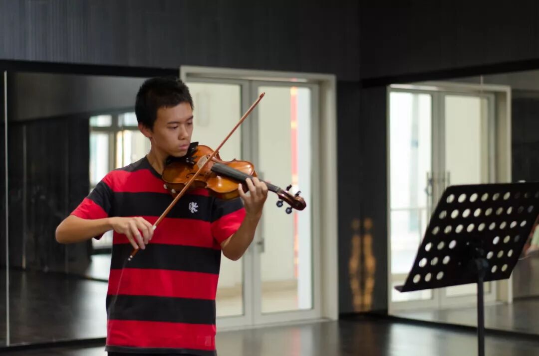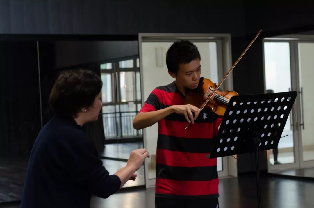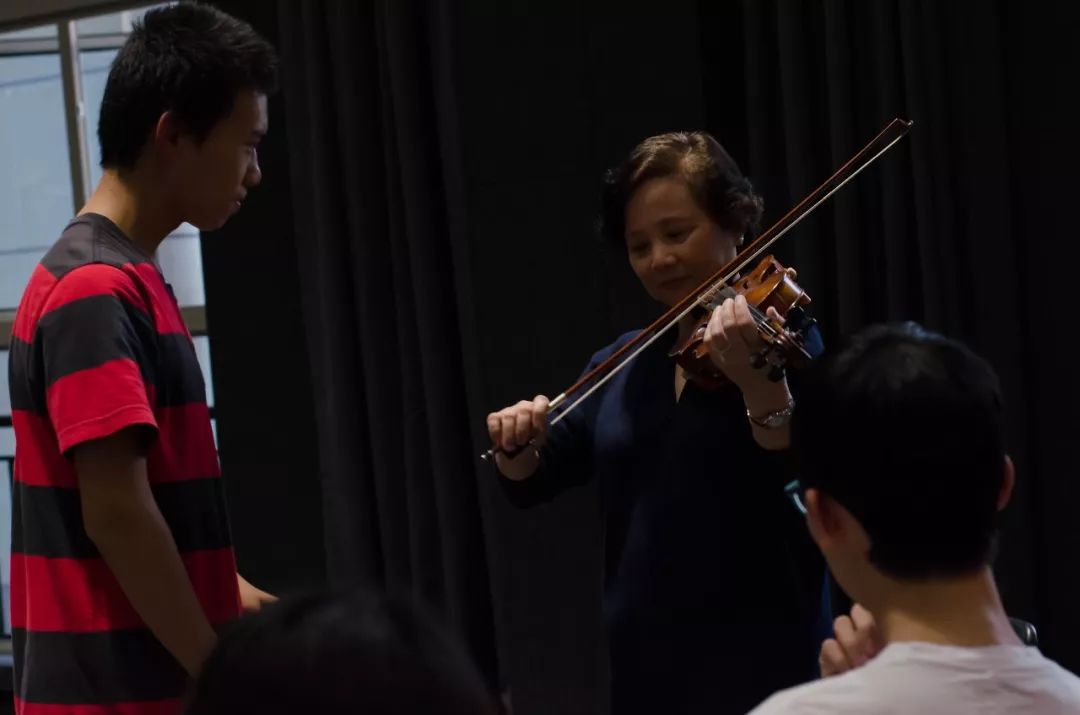 听完同学们的演奏,蔡老师对我们的两位同学给予了极大的肯定和鼓励,然后为他们进行了细致耐心的一对一指导,并亲自示范,包括音准、节奏、握弓和运弓的方法、演奏时的感觉等。