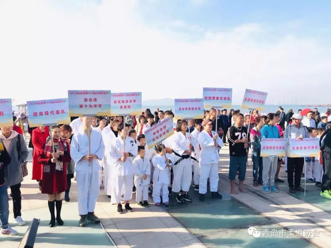 以“阳光、沙滩、健康、快乐每一天”为主题的2019年青岛市第十六届沙滩体育节于10月26日在青岛第一海水浴场举行。本届沙滩体育节由青岛市全民健身领导小组主办,青岛市柔道协会作为协办单位,委派中日友好青岛柔道馆、即墨龙鼎道馆在开幕式中表演。奥运银牌、柔道世界冠军刘霞,作为中国海洋大学柔道教练,带领学生前来第一海水浴场为沙滩体育节表演助威。
