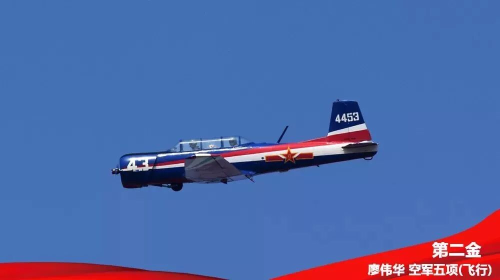 19日上午,空军武汉机场进行空军五项中的飞行比赛部分,“八一空军五项队”首次亮相世界军人运动会。最终,中国选手廖伟华击败芬兰、丹麦、瑞典、西班牙、巴西等8国代表队选手,夺得冠军!这是中国代表团在本届军运会获得的第二枚金牌,也是中国空军五项队组队以来获得的首枚军运会金牌。
