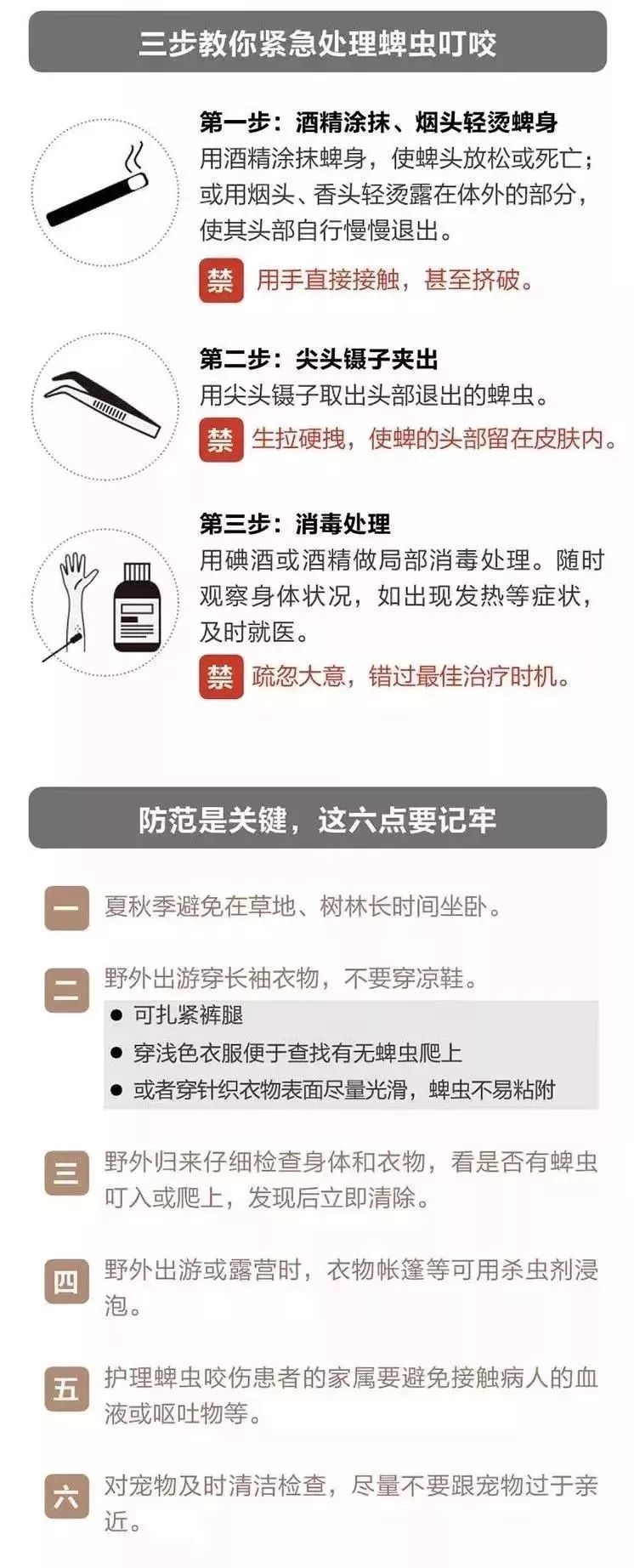 俗称蜱虫病,是由新型布尼亚病毒引起的急性传染病。本病主要通过蜱虫叮咬传染。在丘陵、山地、森林等地区生活、生产的居民和劳动者以及赴该类地区户外活动的旅游者感染风险高。