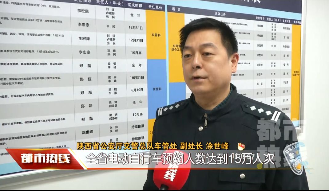 陕西省公安厅交警总队车管处 副处长涂世峰:“截止到10月24号,全省的电动自行车预约人数达到15万人次,正式挂牌的已经超过5万余辆。”