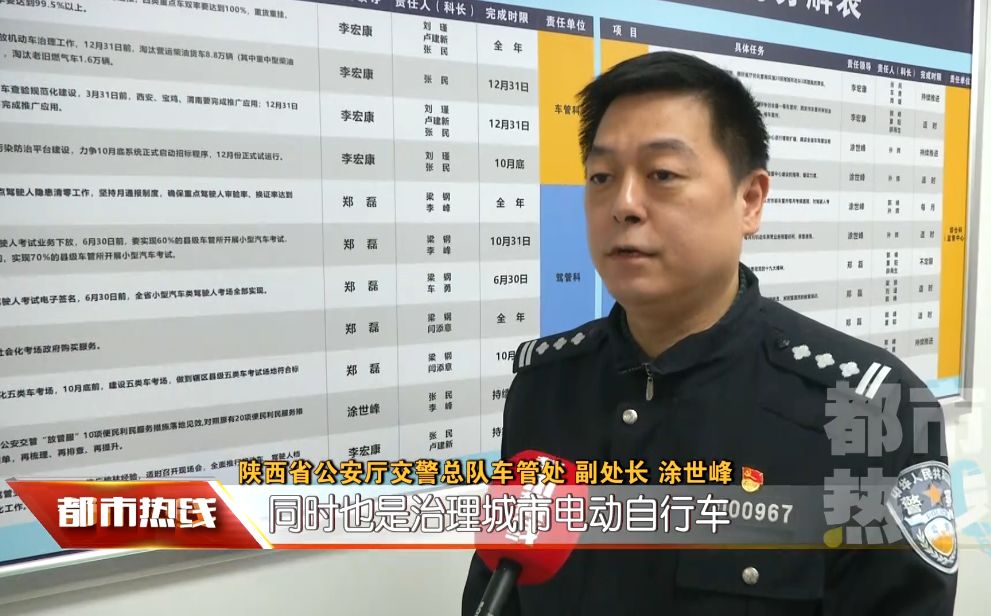 陕西省公安厅交警总队车管处 副处长涂世峰:“电动自行车登记挂牌是落实国家新国标的一个基本要求,同时也是治理城市电动自行车交通乱象的一个重要举措,电动自行车登记挂牌以后对电动自行车用户自身权益也是一个很大的保护。”