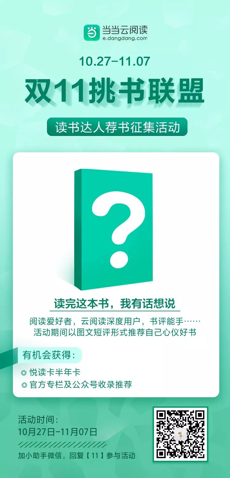 10月27日-11月7日,当当云阅读重金招募“读书达人”: