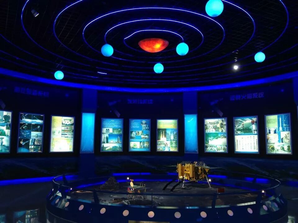 在科普馆展厅通过图片介绍我国航天工程八大系统、长征系列火箭、各类卫星、月球探测等工程,并在实物展区参观中国首辆月球车——玉兔号、中国“远洋3号”测量船、“东方红3号”、遥感式返回舱和黑匣子等实物。
