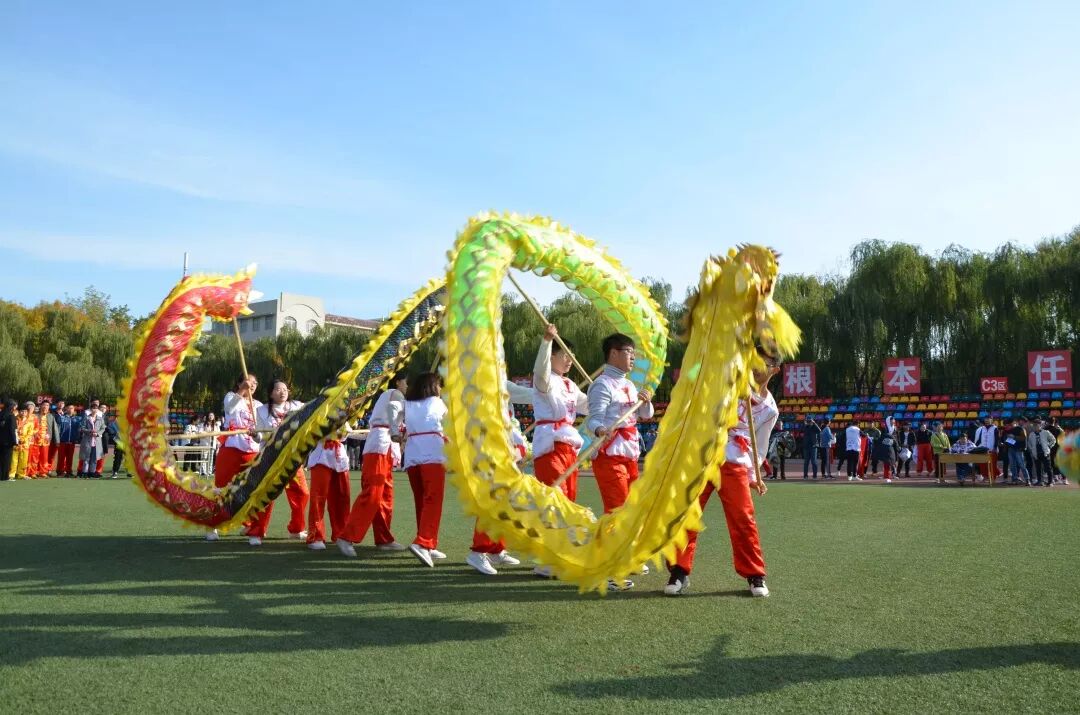 操场上的王者,民族的希望。那龙头硕大而威严,龙须飘动,目光如炬,真有一种“神龙”的感觉。舞龙的小哥哥,小姐姐们身穿白红对襟衣,灯笼裤,腰扎红色绸带,高举舞龙杆,兴高采烈地舞动着,看得大家内心振奋!