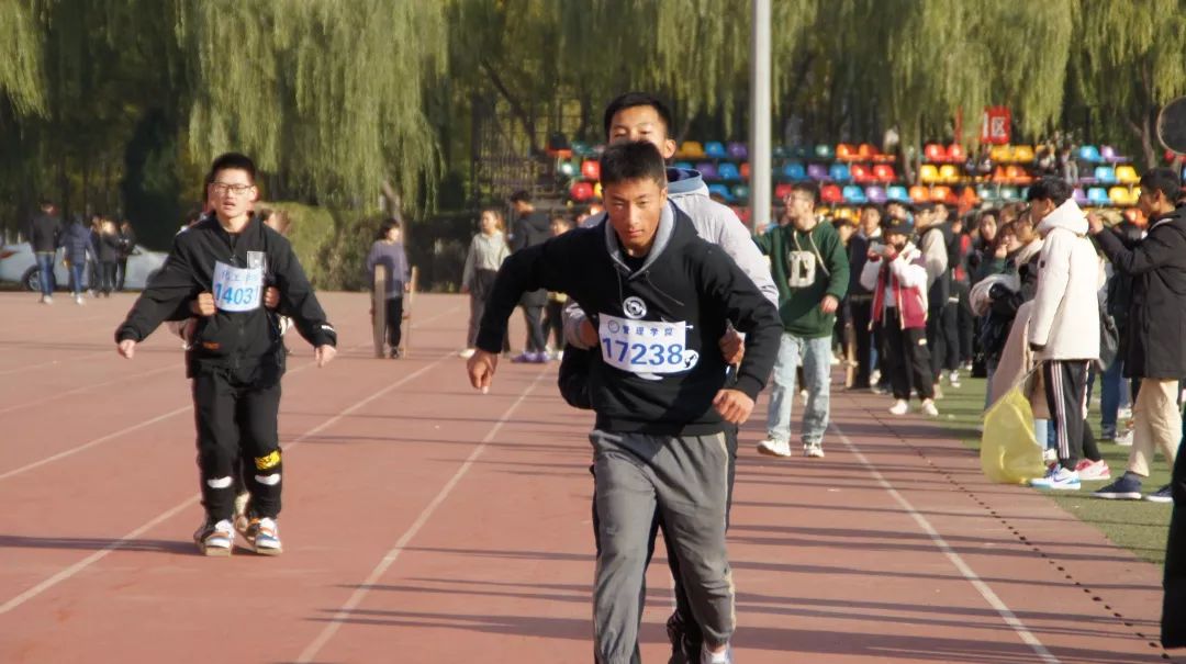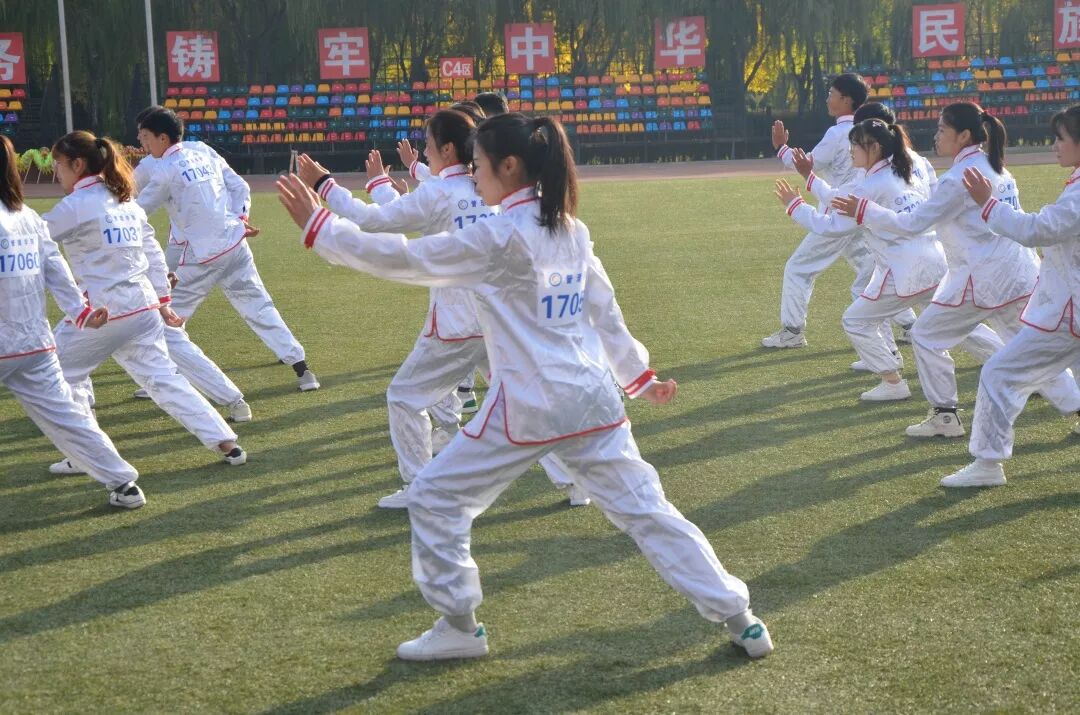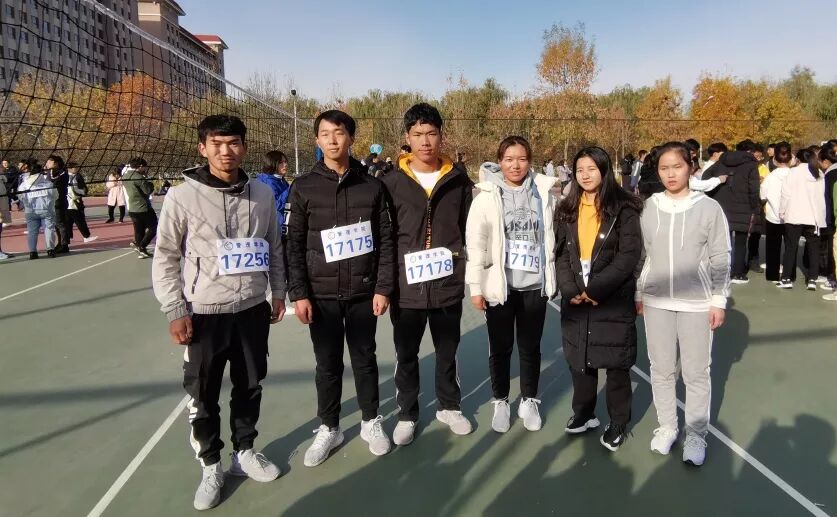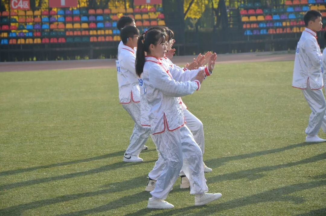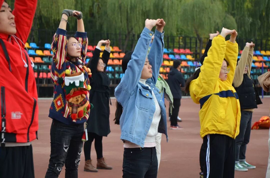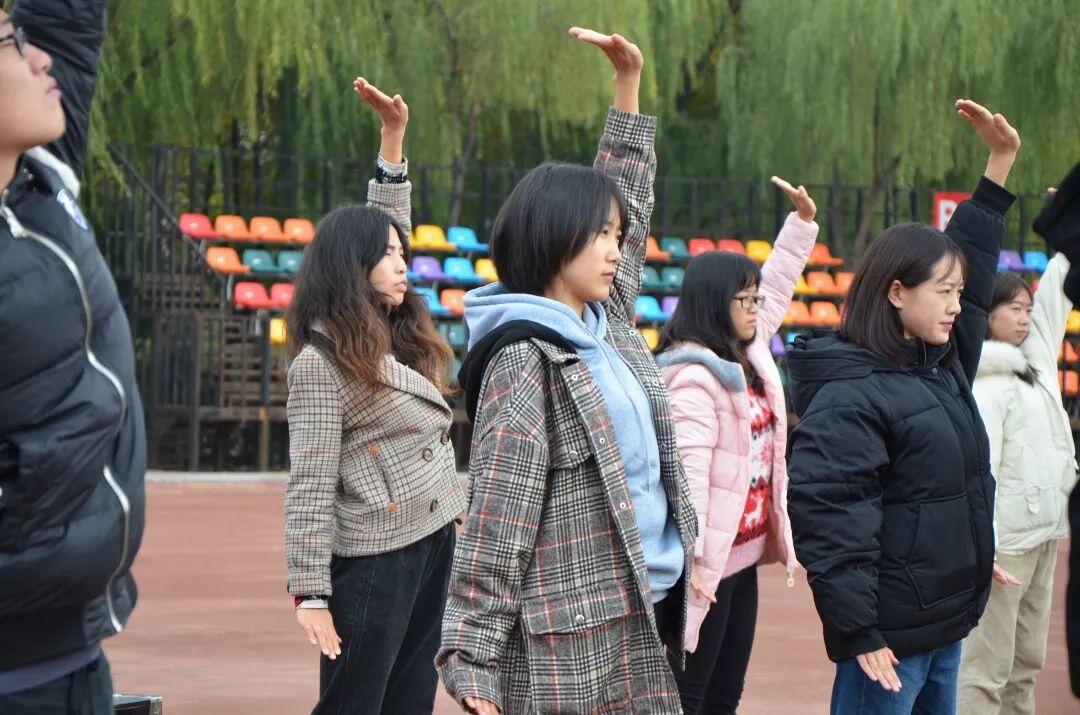 操场上因寒冷凝结起的白霜,在阳光下变换着色彩,若隐如现的闪烁着,但同学们的热情如同暖阳温暖了整个现场。