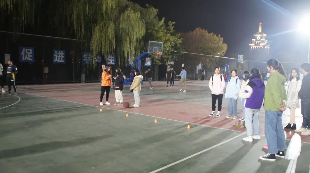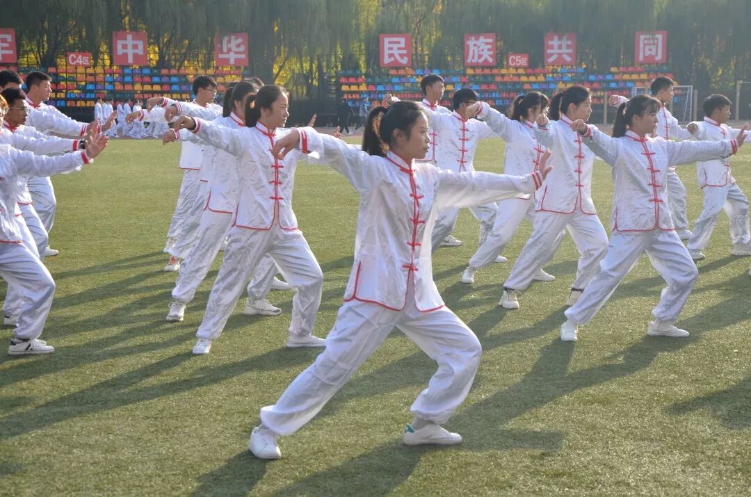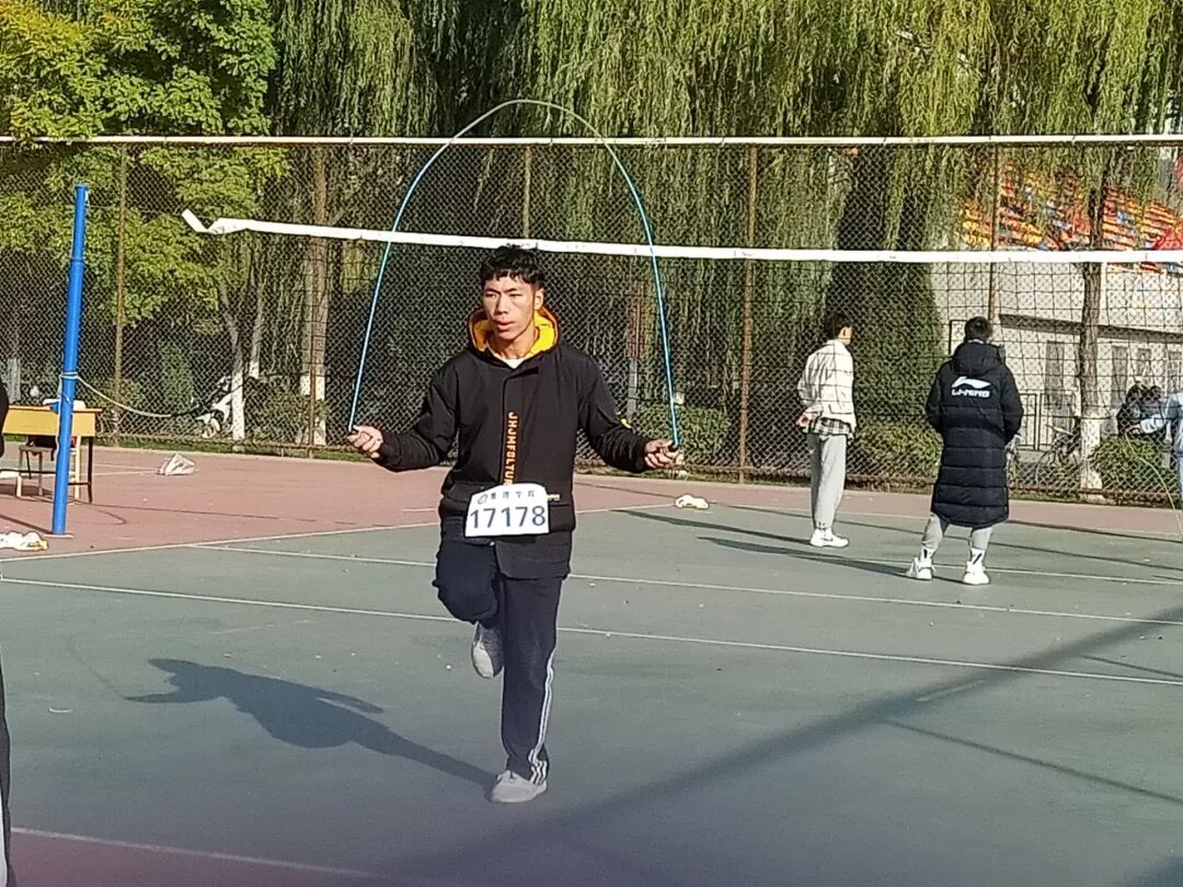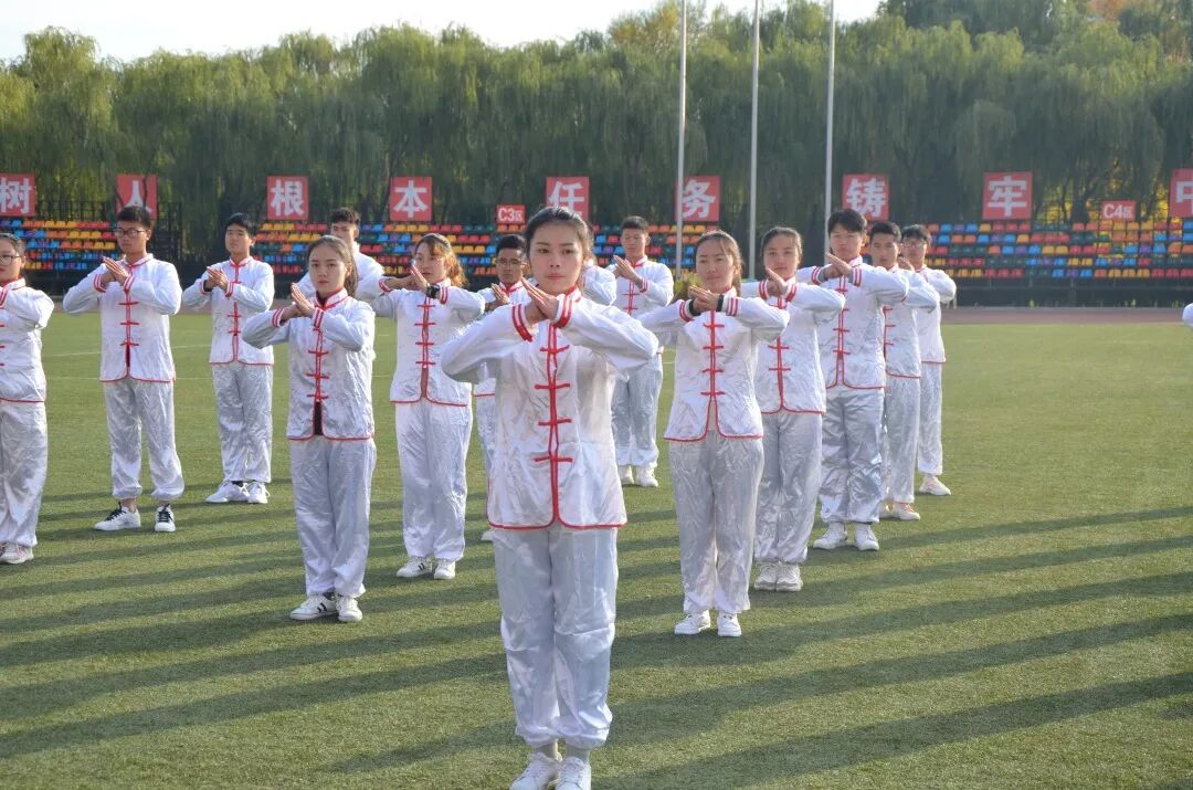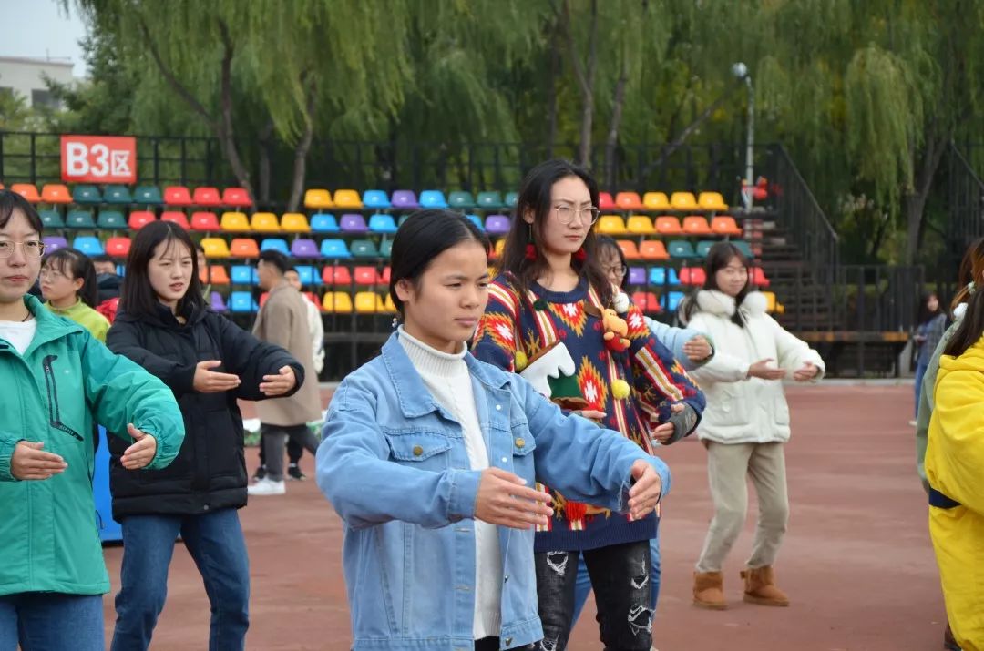 操场上因寒冷凝结起的白霜,在阳光下变换着色彩,若隐如现的闪烁着,但同学们的热情如同暖阳温暖了整个现场。