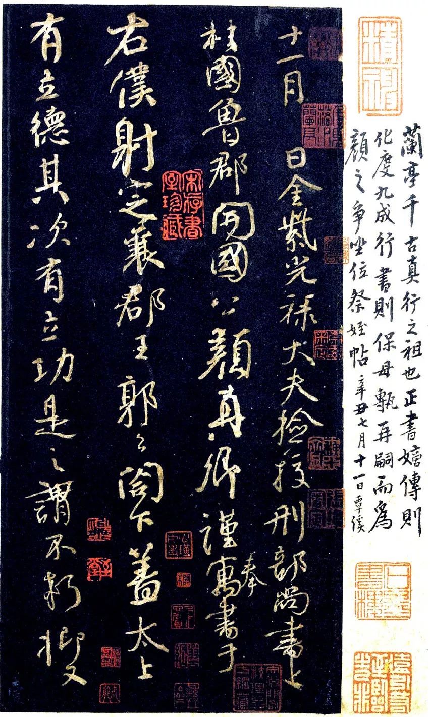颜真卿《争座位帖》,又称《论座帖》《与郭仆射书》,与王羲之的《兰亭序》并称为“行书双璧”,与《祭侄文稿》《祭伯文稿》合称“颜书三稿”。此帖信笔疾书,豪宕尽兴,姿态飞动,苍劲古雅,受到历代推崇,堪称颜氏行草精品。