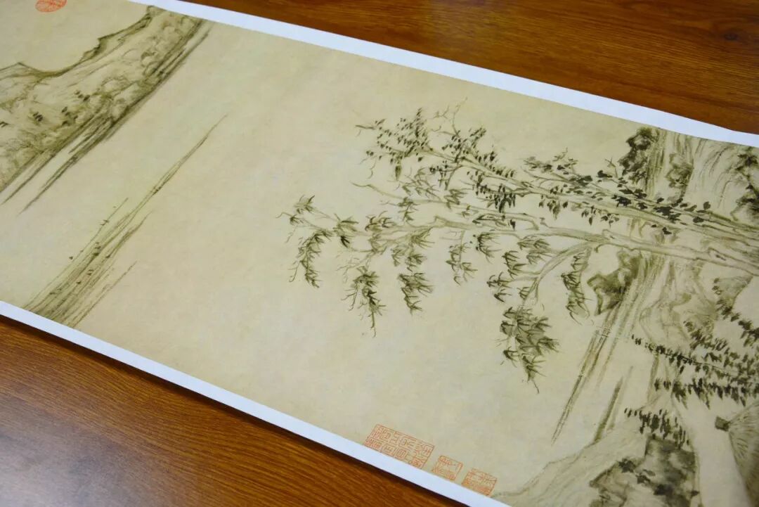 这种观画经验打破了中国山水画宜远观不宜近赏的美学传统。近观将零碎、散乱的山石、松林、飞瀑化零为整,成为有机的统一体,远观则尽显整中之繁,密中之疏,奇崛中峭拔,逶迤中缱绻,在远观和近睹的双重比对审视下,凸显其苍茫的层次之感和幽深的隐逸情怀。