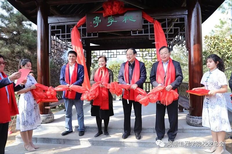 学校领导、老师和校友代表共同为“桃李亭”落成剪彩