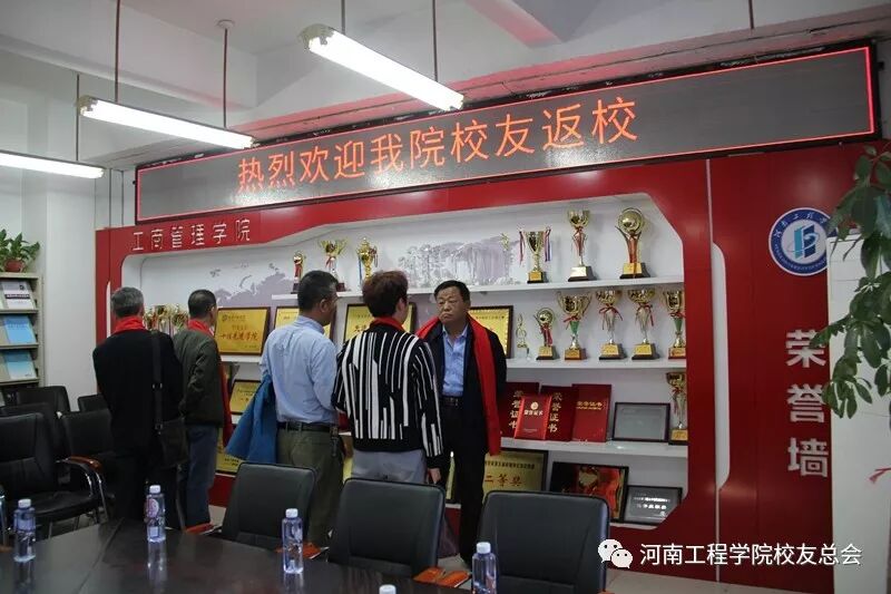 校友们来到南阳路校区(原郑州煤田职工地质学院校区)看望了离退休老教师,并参观了教学楼、宿舍楼等教学设施,重温当年的青春岁月。至此,以“捐建一个亭子”、“举行一场联欢会”、“组织一场作品展”、“看望一批老教师”、“重走一段青春路”为主体的校友返校活动圆满结束。感谢校友们长期以来对学校的关注和支持!时光不老,我们不散!这里是河南工程学院,数万河工学子梦开始的地方!欢迎大家回来!