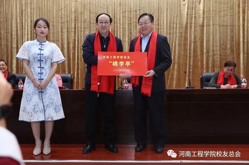 返校校友向母校捐建了“桃李亭”等,“桃李亭”三个字由河南省教育界书画家协会副主席、学校校友总会常务副会长、原党委副书记耿广智题写。“桃李亭”高6米,直径4米,共花费9万余元,坐落于明月湖畔,寓意母校桃李满天下,培养更多的高素质应用型人才,也表达了校友们情系母校,回馈母校的赤子情怀。